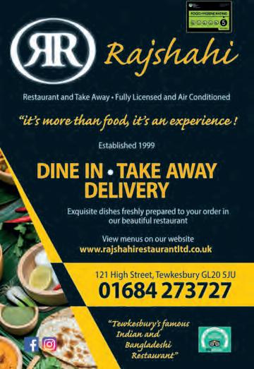 TEWKESBURY DIRECT - 3 Established 1999 DINE IN • TAKE AWAY DELIVERY Exquisite dishes freshly prepared to your order in our beautiful restaurant View menus on our website www.rajshahirestaurantltd.co.uk 121 High Street, Tewkesbury GL20 5JU 01684 273727 “Tewkesbury’s famous Indian and Bangladeshi Restaurant” “it’s more than food, it’s an experience ! Rajshahi Restaurant and Take Away • Fully Licensed and Air Conditioned