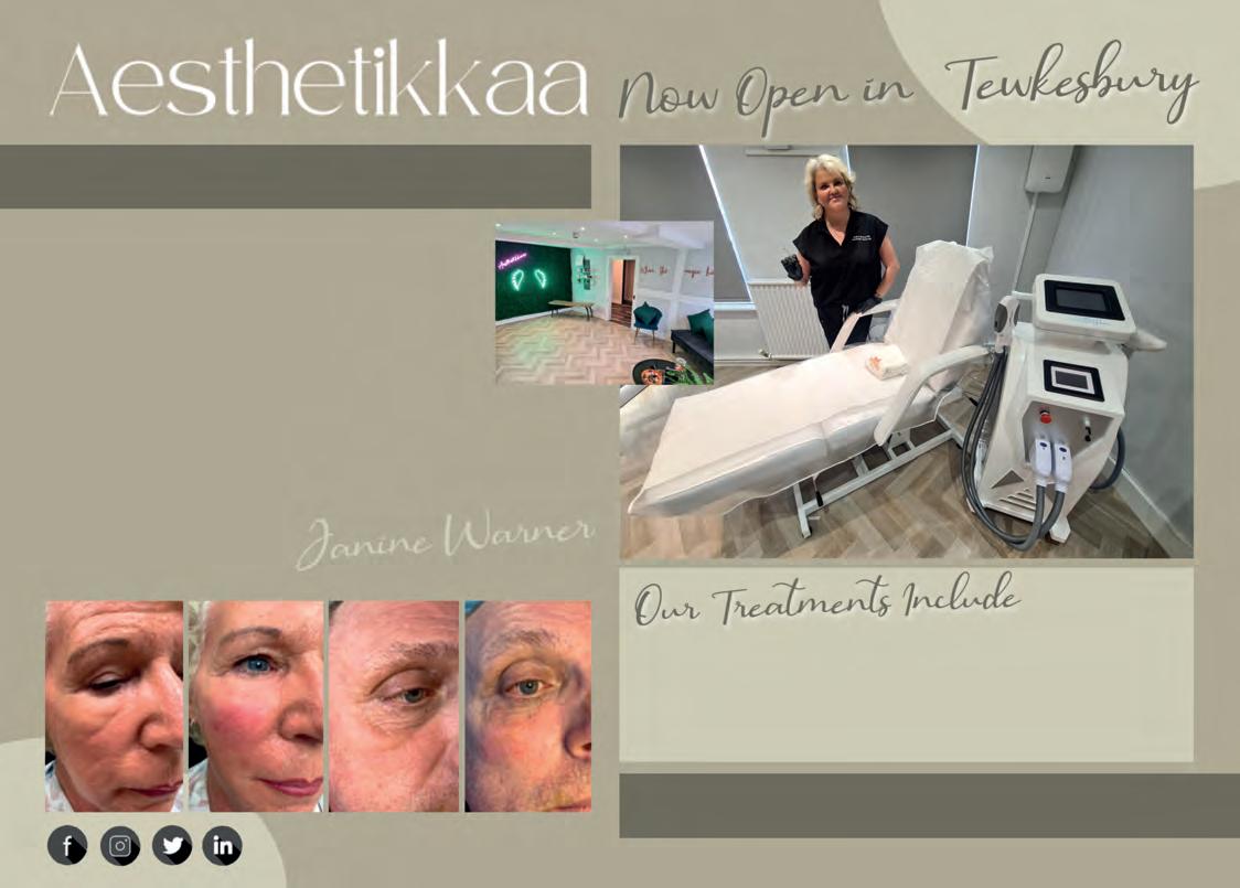 Call 01684 591485 Mobile 07368 400 067 www.aesthetikkaa.com Anti-Wrinkle Treatment Dermal Filler Profhilo Swedish Massage Aromatherapy Massage Pregnancy Massage Laser Hair Removal Wax Hair Removal Tattoo Removal Microblading Vitamin Injections Sunbeds Coming Soon!