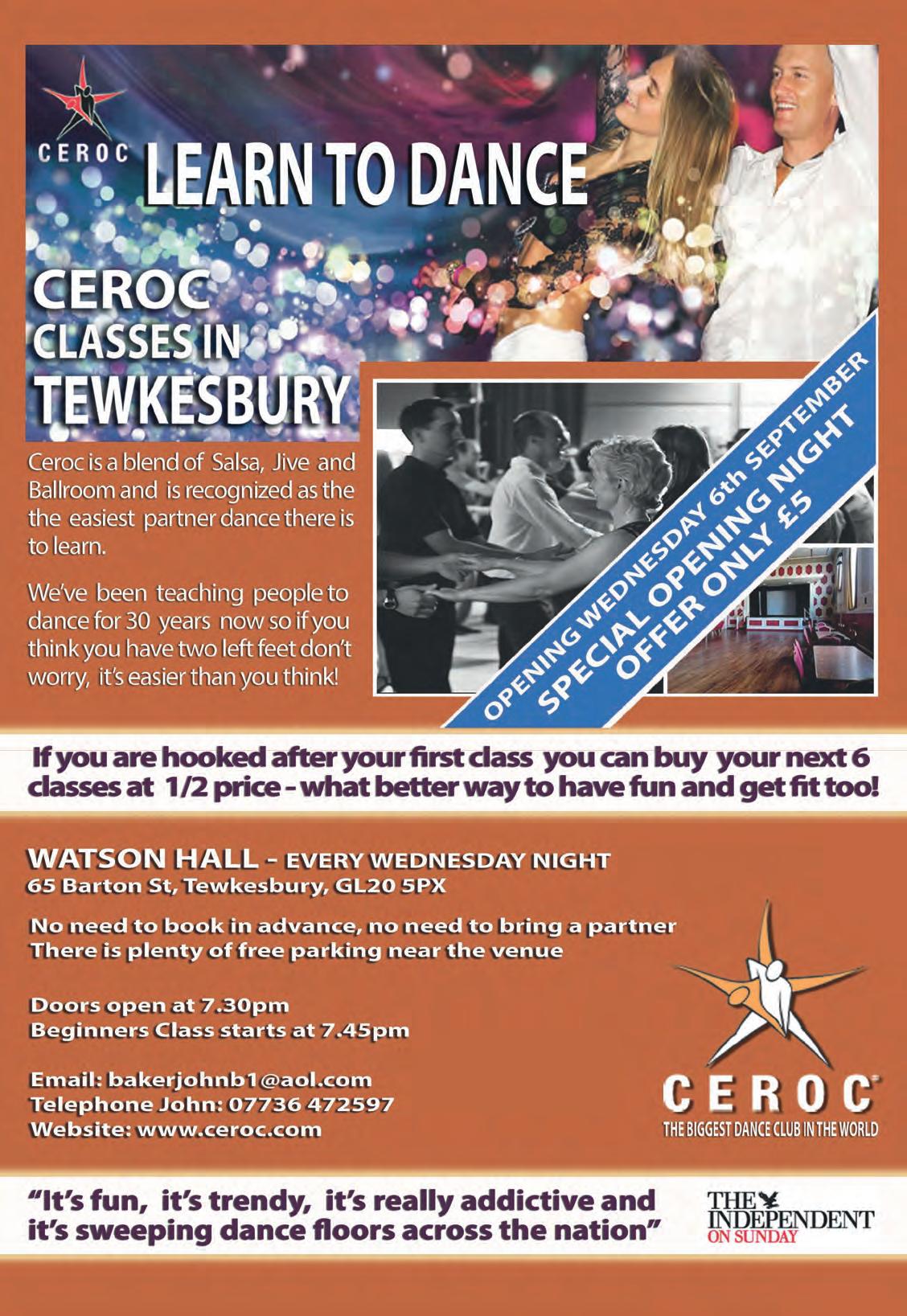 VILLAGE HALL, TEWKESBURY Wednesday 13th September Next Step 6pm-7pm Beginners 7pm-8pm