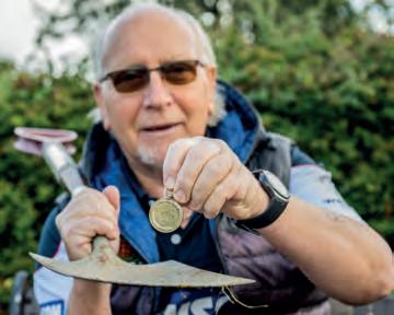 Steve Perry with Harold Crouch’s WW1 Victory medal, unearthed in the garden at Mitton (photos by Jack Boskett)