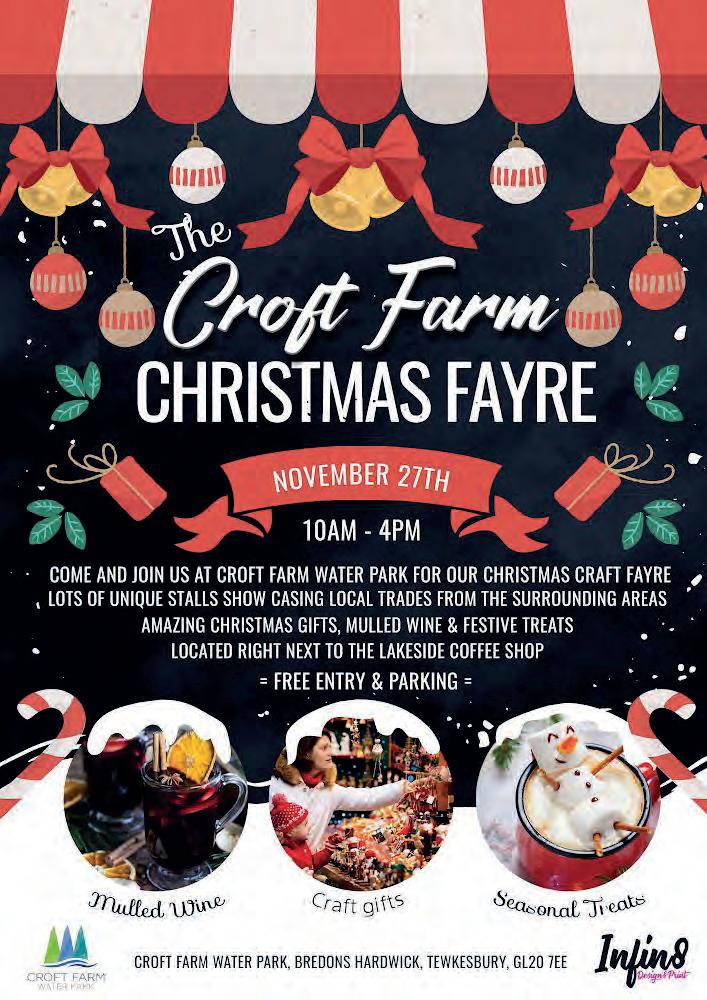 November. Entry is free. Over at Croft Farm, Bredon’s Hardwick, a Christmas Craft Fayre will take place on Sunday 27th November, from 10am-4pm.
