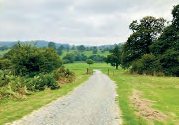 Back at point (5), turn left and keep following the track down towards the park’s main entrance on the A438.