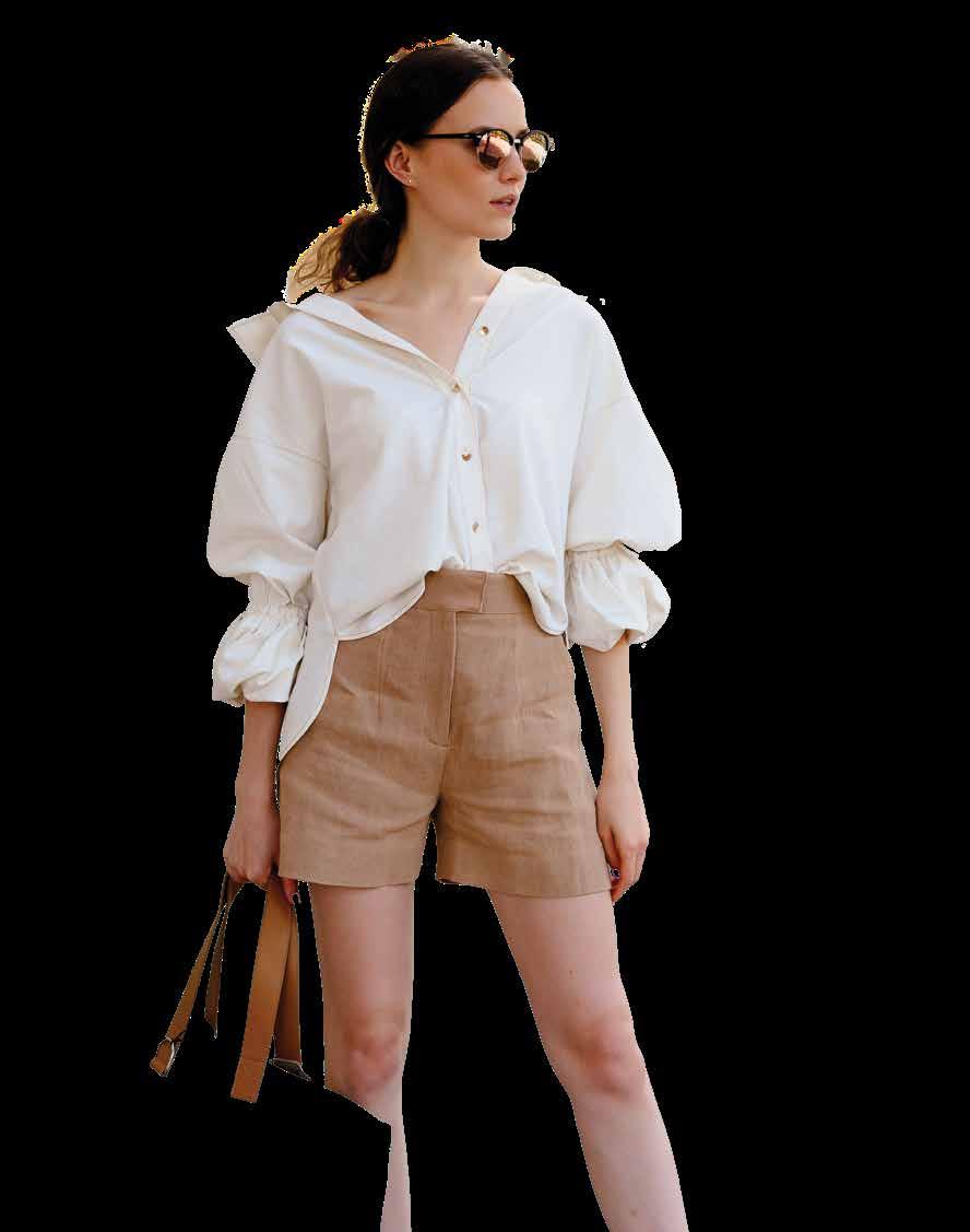 The classic linen shirt can be worn with just about any other bottoms and pants. Apply the balance rule here. If you have a loose linen blouse, pair it with a slimmer bottom. Conversely, If you have a flared or loose fitting bottom, wear a more fitted top. An oversized linen top tied at the waist is one of my favorite looks for summer.