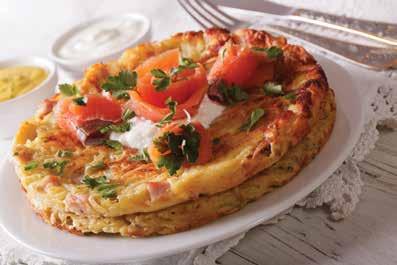 Pipe some sour cream or crème fraîche in the middle of the potato cakes.