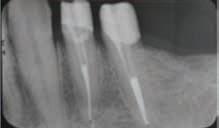 Figure 2. PA radiograph 3 years later demonstrating obvious enlargement of the radiolucency with increased root resorption of tooth #30.