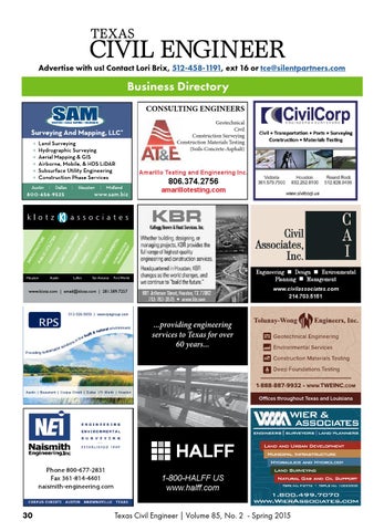 1-800-HALFF US www.halff.com Texas Civil Engineer | Volume 85, No. 2 - Spring 2015