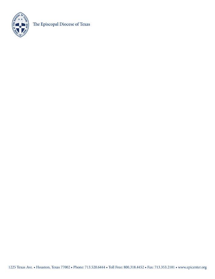 The Episcopal Diocese of Texas 713.353.2133 ext 1025 ahider@epicenter.org 1225 Texas Ave Houston, TX 77002 www.epicenter.org