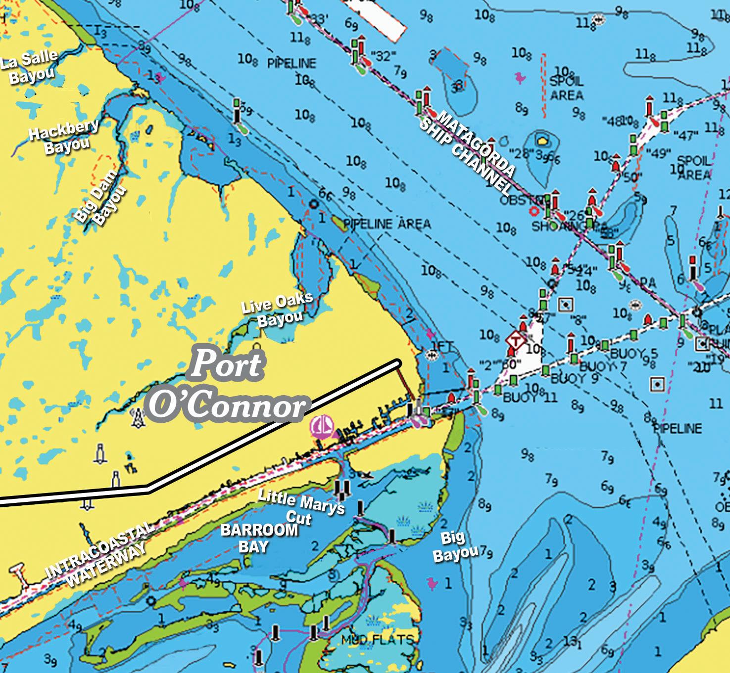 Use the SOLUNAR ADJUSTMENT SCALE on the map below to adjust times for points East and West of our Base Point at Galveston Channel.