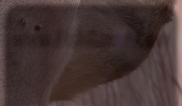 Something I noticed about the animal in these photos is the size of the paws. ey are domestic cat size in proportion to the body.