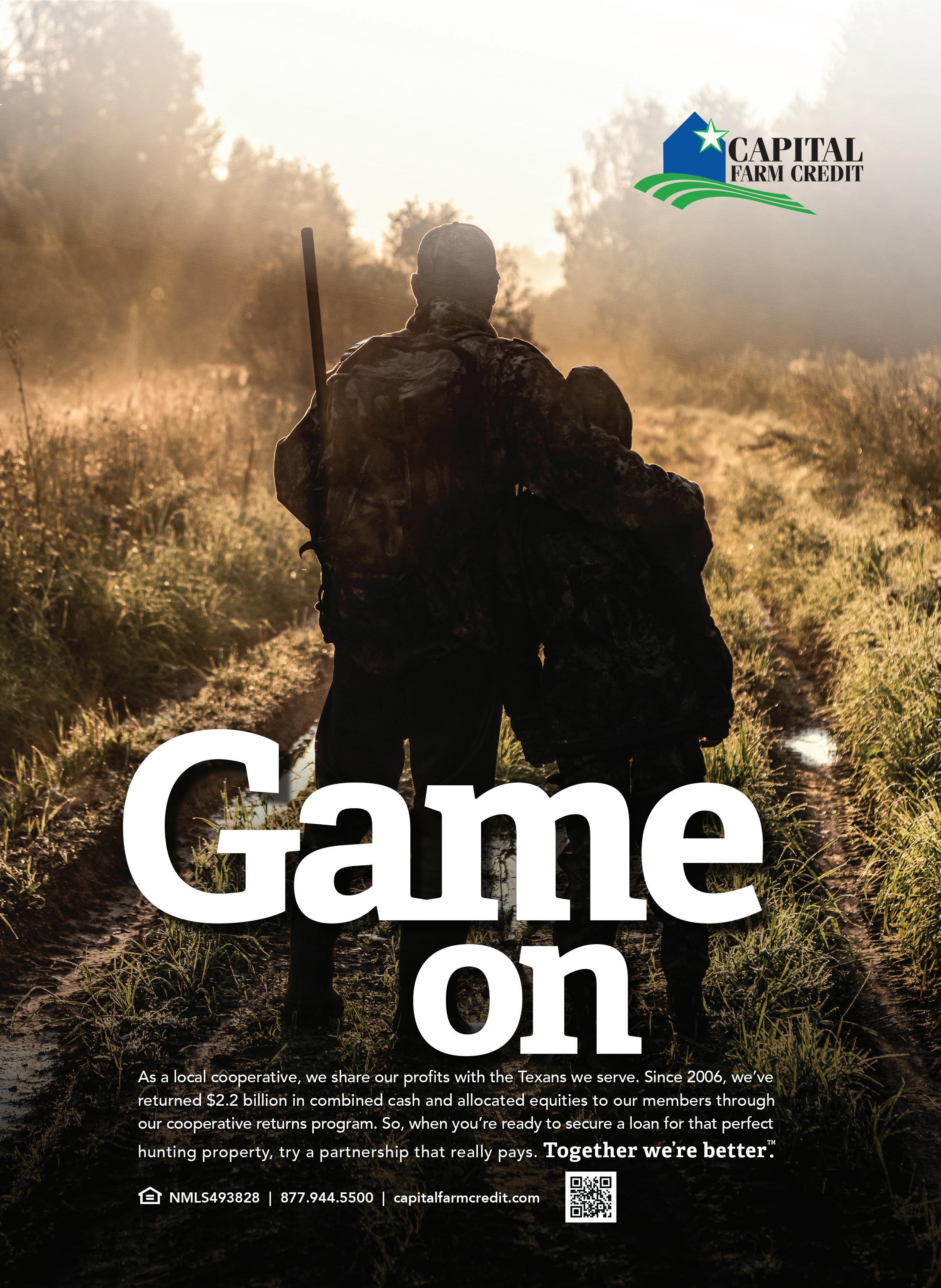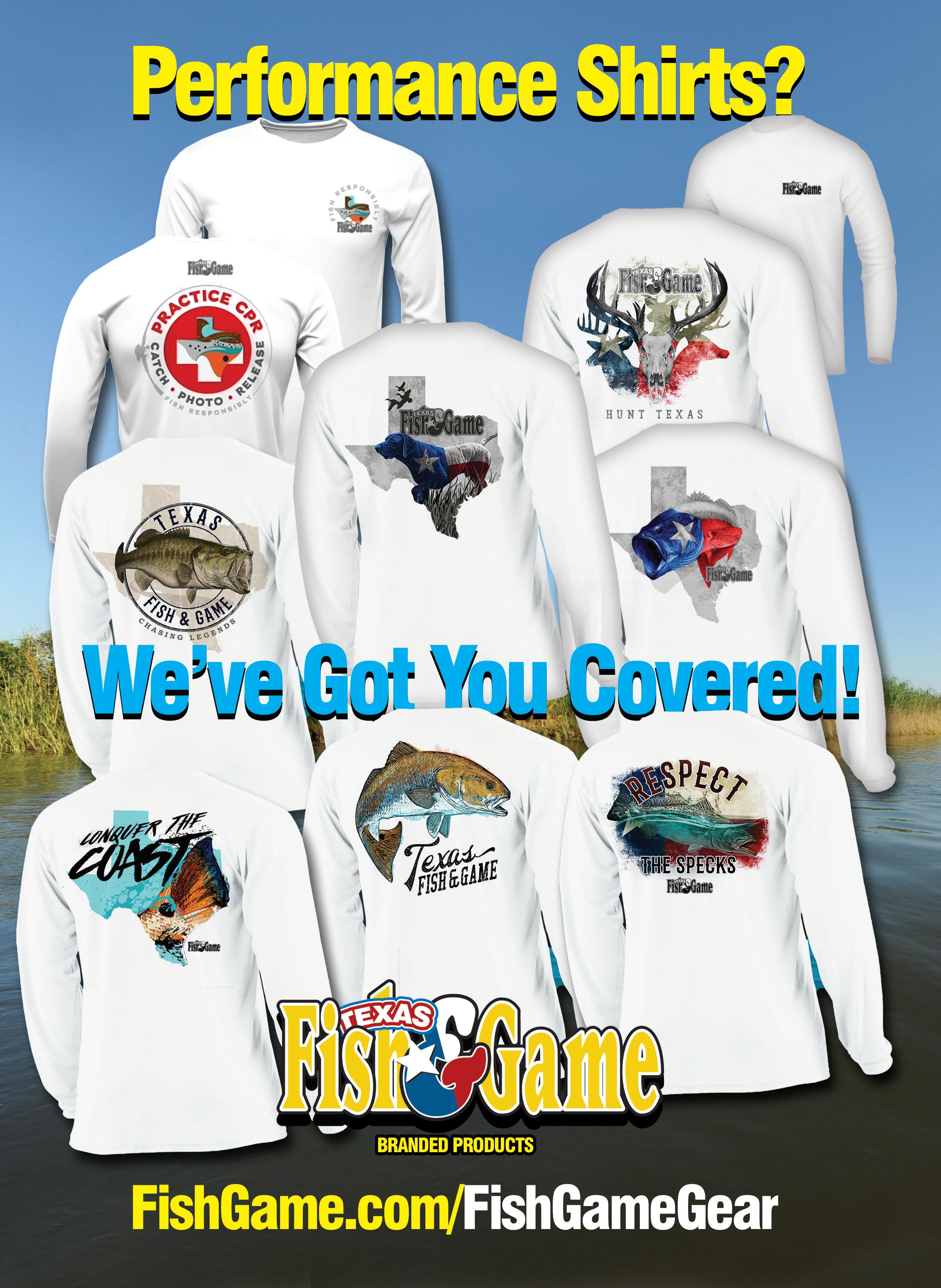 TEXAS FISH & GAME (ISSN 0887-4174) is published bi-monthly by Texas Fish & Game Publishing Co., LLC., 3431 Rayford Road, Suite 200-408, Spring, TX 77386. ©Texas Fish & Game Publishing Co., LLC. All rights reserved. Content is not to be reprinted or otherwise reproduced without written permission. The publication assumes no responsibility for unsolicited photographs and manuscripts. Subscription rates: 1 year $24.95; 2 years $42.95; 3 years $58.95. Address all subscription inquiries to Texas Fish & Game, 3431 Rayford Road, Suite 200-408, Spring, TX 77386. Allow 4 to 6 weeks for response. Give old and new address and enclose latest mailing address label when writing about your subscription. POSTMASTER: Send address changes to: TEXAS FISH & GAME, 3431 Rayford Road, Suite 200-408, Spring, TX 77386. Address all subscription inquiries to TEXAS FISH & GAME, 3431 Rayford Road, Suite 200-408, Spring, TX 77386.