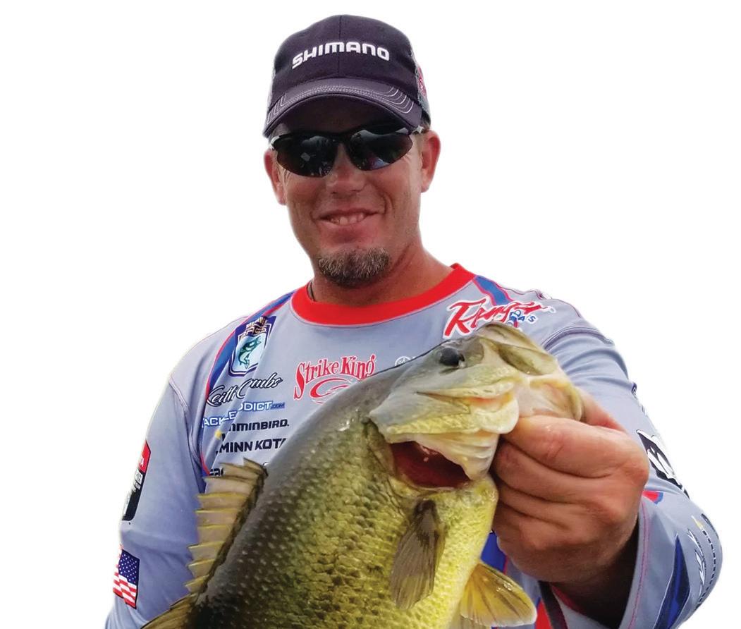 KEITH COMBS, A record-se ing three-time winner of the Toyota Texas Bass Classic, loves power shing. In particular, he’s deadly with a deep-diving crankbait such as a Strike King 6XD or 10XD on o shore structure. When the inevitable late fall and winter cold snaps hit the Lone Star State, however, he turns to a more nesse-oriented approach.