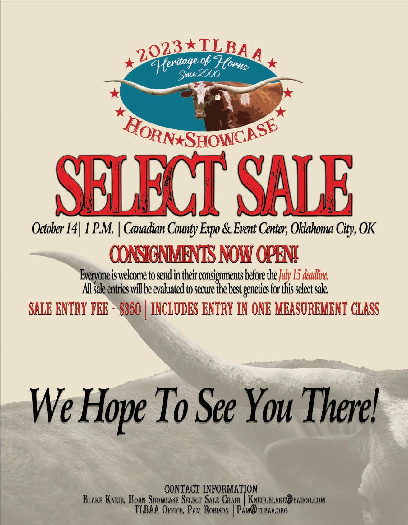 SEPTEMBER 29th • Breeder Spotlight Texas Longhorn Heifer Sale El Dorado, KS. Contact Scott Farber crossfirelonghorns@gmail.com (316) 706-9400 or Randy Jones (316) 323-2575