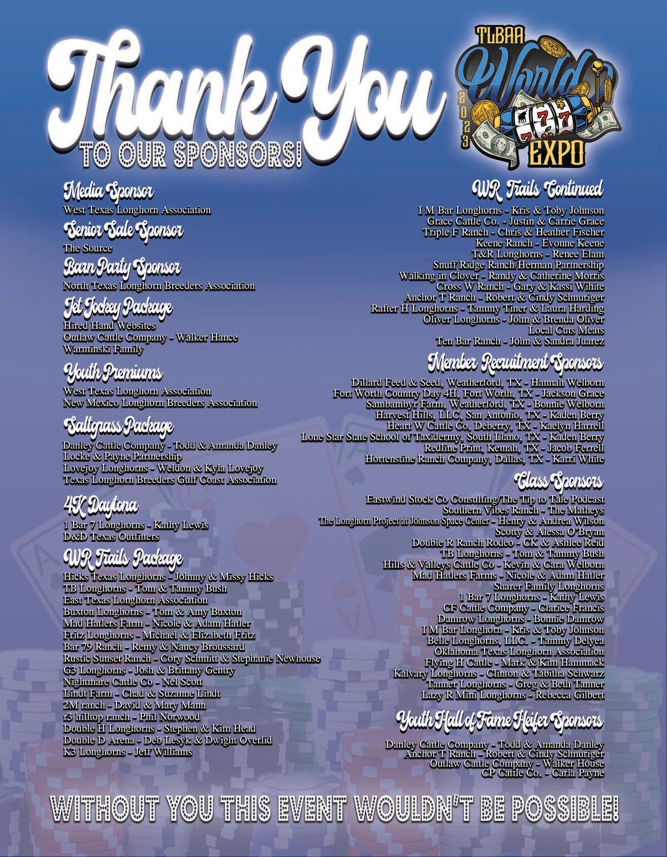 This issue contains information on many ways you can participate in the Longhorn industry in the second half of the year. The TLBAA World Expo will be happening in Belton, TX in mid-June. Consignment deadlines are coming up for TLBAA’s Horn Showcase. Inside you will find all the forms and information you need for the large fall event that includes a Select Sale, Horn Measuring competition, Futurity and Banquet. If you’re new to the industry, both of the events mentioned are free to the public and breeders would love to talk to you about this great breed of cattle.