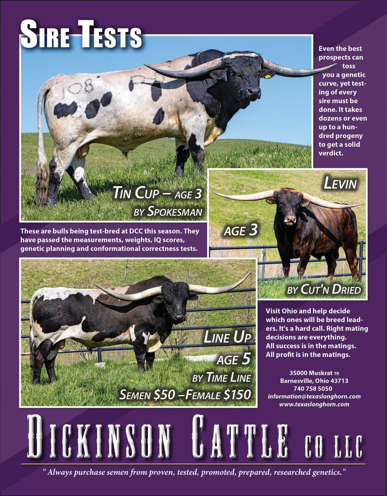TEXAS LONGHORN TRAILS June 2023 | 59 — A — A & S Land & Cattle 57 Anderson, Frank Jr. and III 8 Arch Acres 56 — B — Baker, Bo 8,9 Bar H Ranch 56 Beadle Land & Cattle 8, 56 Beaver Creek Longhorns 58 Bennett Longhorn Cattle Co. 8 Bentwood Ranch 58 Big Valley Longhorns 56 BPT Longhorns 8 Bull Creek Longhorns 3 Butler Breeders 8, 9 Butler Breeder’s Futurity 8 Buxton Longhorns 58 — C — 2020 Cow Photo Contest 38 C4Longhorns 8 Caballo Bravo Longhorns 56 Cedar View Ranch 56 Christa Cattle Co. 8 C Lazy S Bar Cattle Co. 57 Colorful Calf. 35 Cote Cattle Company 56 Cowboy Conversations IBC Crazy Cattle Co 57 Cross Fire Longhorns 56 — D — Dalgood Longhorns 8 DCCI Equipment 30 Diamond C Ranch 57 Diamond Q Longhorns 57 Dickinson Cattle Co BC Doug Hunt Longhorns 58 — E — El Coyote Ranch 1 Elm Springs Acres 58 — F — F & F Ranch 56 Falls Creek Longhorns 8 FHR Longhorns 57 Flying D Ranch 57 Flying Diamond Ranch 56 — G — Guttman, Ralph 58 GVR Longhorns 57 — H — Helm Cattle Co 57 Hicks Texas Longhorns 8 Hickman Longhorns 57 Hired Hand.............................................24,33 Horn Showcase 14-21 Horseshoe J Longhorns 57 Hubbell Longhorns IFC Hutton 3 Cattle 58 — I — Ironwood Ranch 57 — J — Jane’s Land & Cattle Co..............................9 Jack Mountain Ranch 58 JH Cattle Company 58 J&M Ranch 57 J.M.R. Cattle Co. 57 Jo-Lin Ranch. 58 — L — Legends Sale 26-27 Lemonade Ranch 57 Little Ace Cattle Co. 9 Lodge Creek Longhorns 58 Lone Wolf Ranch 57, 55 Long M Ranch 57 Lucas Ranch 56 Lutt Longhorns 57 — M — McCarty, Bruce 58 McLeod Ranch 9 McIntyre Ranches.......................................55 Middlecreek Farms 57 Montgomery Briggs Ranch 56 Moose Willow Ranch 56 Moriah Farms...............................................57 — N — Northbrook Cattle Company 57 NS Horns 56 — O — Oliver Longhorns 57 — R — Raising Hale Ranch 58 Ranch Texas..................................................5 Rio Vista Ranch 9 River’s Bend Ranch 57 Rocking P Longhorns 9 Rocky Mountain Longhorns.....................56 Rolling D Ranch 56 Rolling Hills Ranch Longhorns 56 Roper’s Ranch 58 Ross Ranch Horns 57 Running Arrow Farm LLC 30 — S — Safari B Ranch 57 Sand Hills Ranch 56 Siller Land & Cattle 33 Singing Coyote Ranch...............................58 Spidle Ranch 58 Spring Creek Farms 9 SS Longhorns 57 Star Creek Ranch........................................58 Stonewall Valley Ranch 58 Struthoff Ranch 58 Sutton Timber & Cattle 56 Thate Cattle Co 9, 58 — T — Thurmond Longhorns 58 TLBAA Beef Committee 31 TLBT 40 Top Hand Sale 7 Triple R Ranch (TX) 9 Triple S Bar Ranch 57 TS Adcock Longhorns 58 — W — Walkers U7- 58 WB Longhorns 57 Westhaven Longhorns 56 World Show 25 Wynfaul Acres 9 UPCOMING ISSUES: July: Membership Directory August: World Show Wrap-Up Issue September: Marketing Advertising index JUST FOR GRINS HAVE A CUTE PIC? Send us your photo with a funny caption included! Send your photo with caption to: Texas Longhorn Trails, Attn. Myra, • P.O. Box 4430 • Fort Worth, Texas 44160 or myra@tlbaa.org (Email entries should include address.) Photo may be used in a future issue due to number of responses