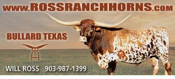 BEAVER CREEK LONGHORNS - Est. 1995. Conformation, color, disposition, pedigree and HORNS. Reasonable prices. Carole Muchmore, Ponca City, OK. 580 765-9961 (calls only) or email cmuchmor@ poncacity.net. www.beavercreeklonghorns.com