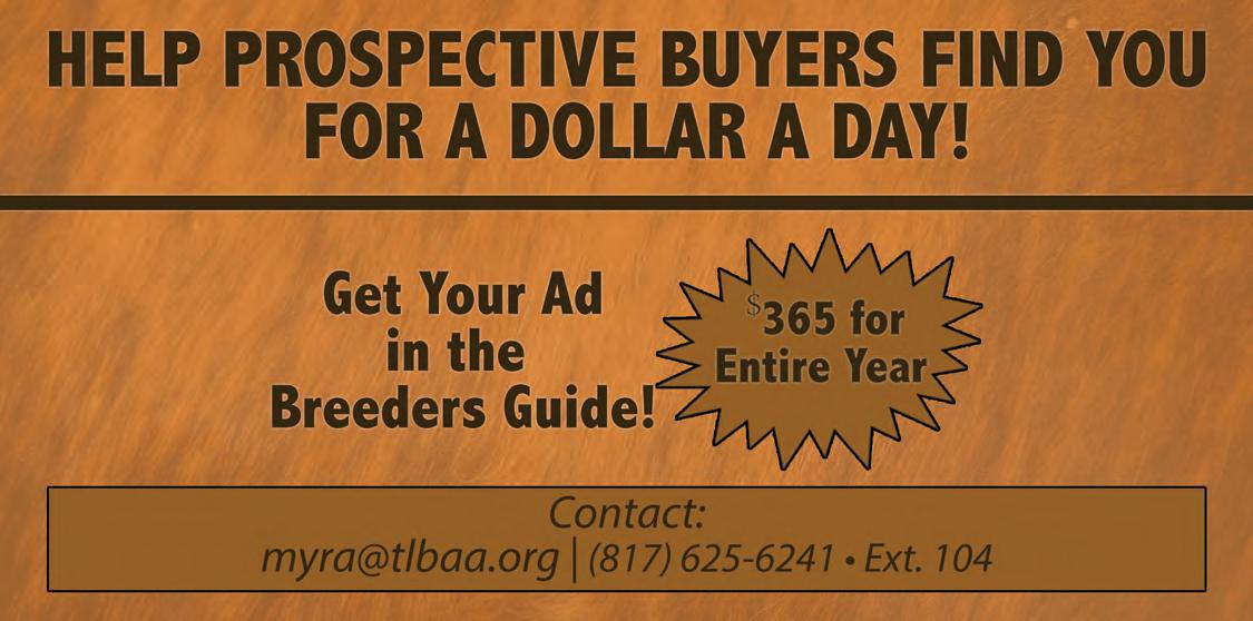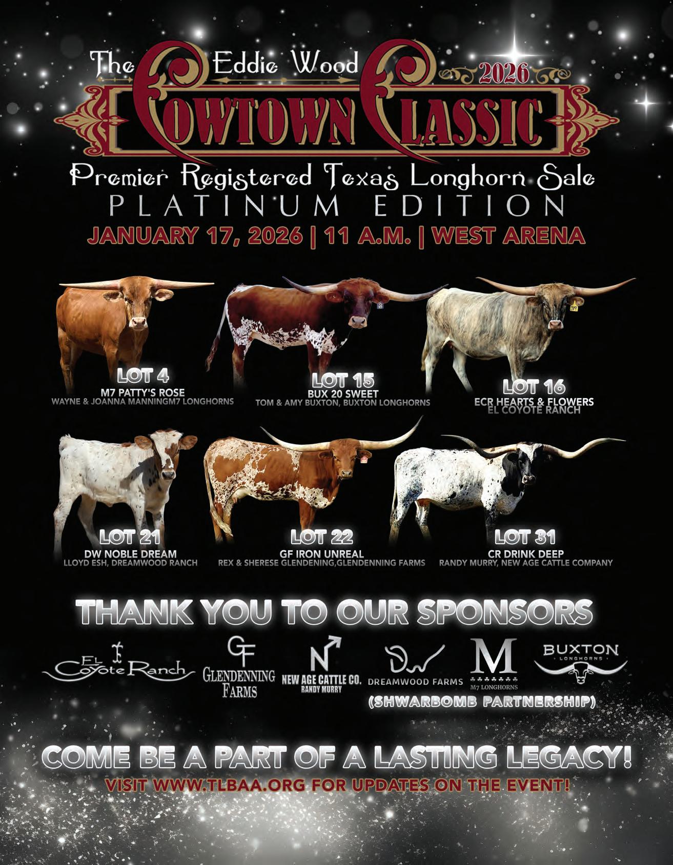January 17, 2026 • Eddie Wood Cowtown Classic Sale, Will Rogers Center, Fort Worth, TX. Contact Pam Robison pam@tlbaa.org