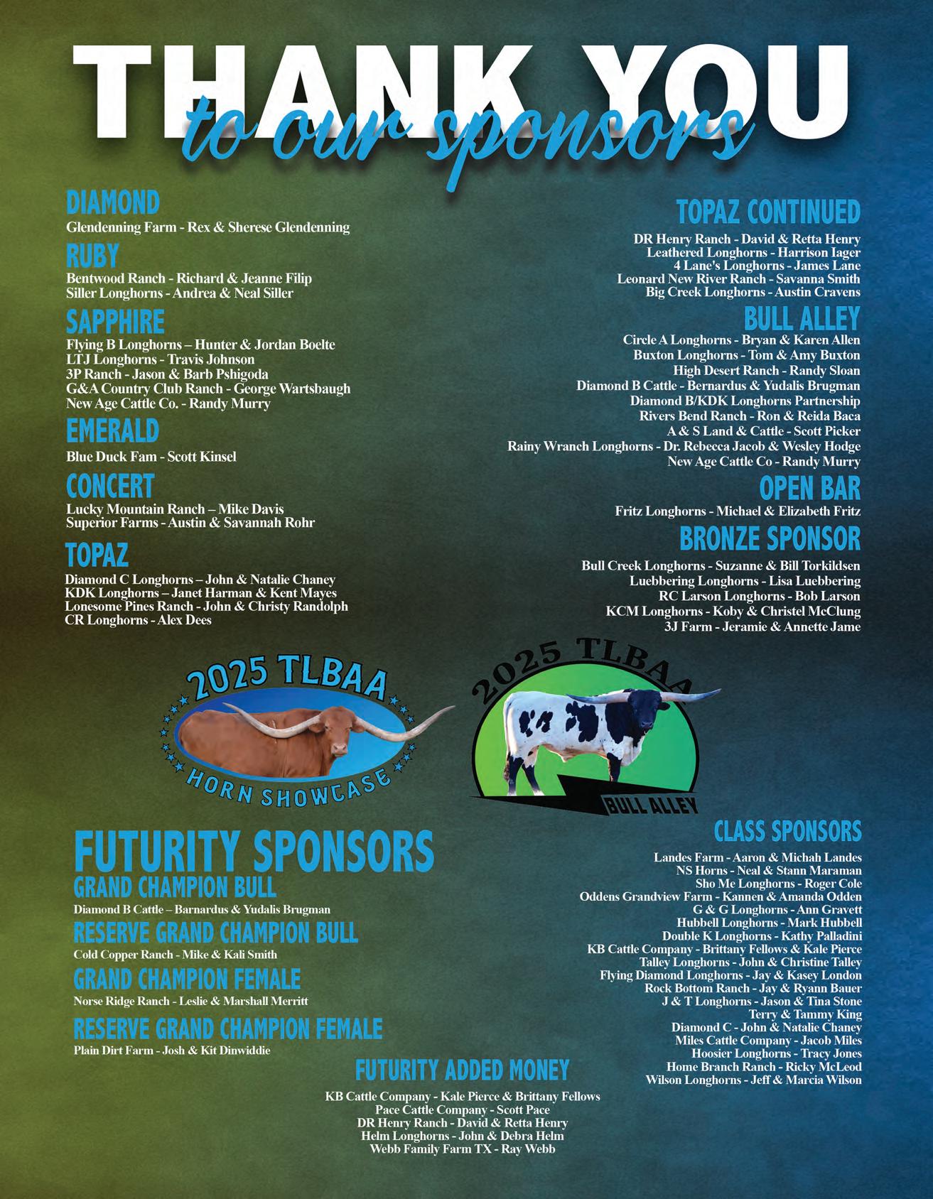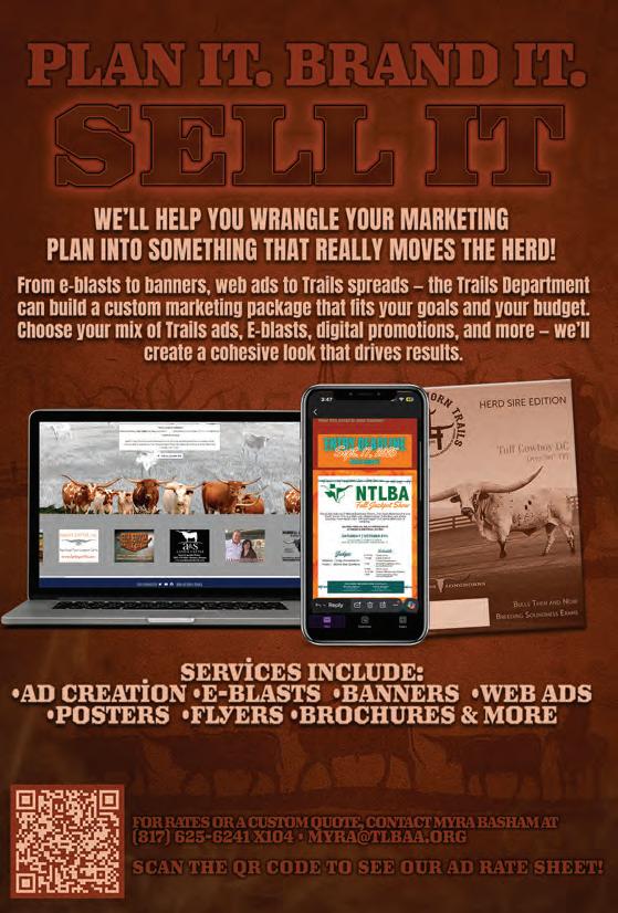 March 21-22, 2026 • Houston Livestock Show & Rodeo, NRG Center Houston, TX Enter Online www.rodeohouston.com Contact Pam Robison 817-6256241 or pam@tlbaa.org Qualifying Haltered, Trophy Steers & Youth . Entries Open December 15, 2025 | Entries Close February 1, 2026