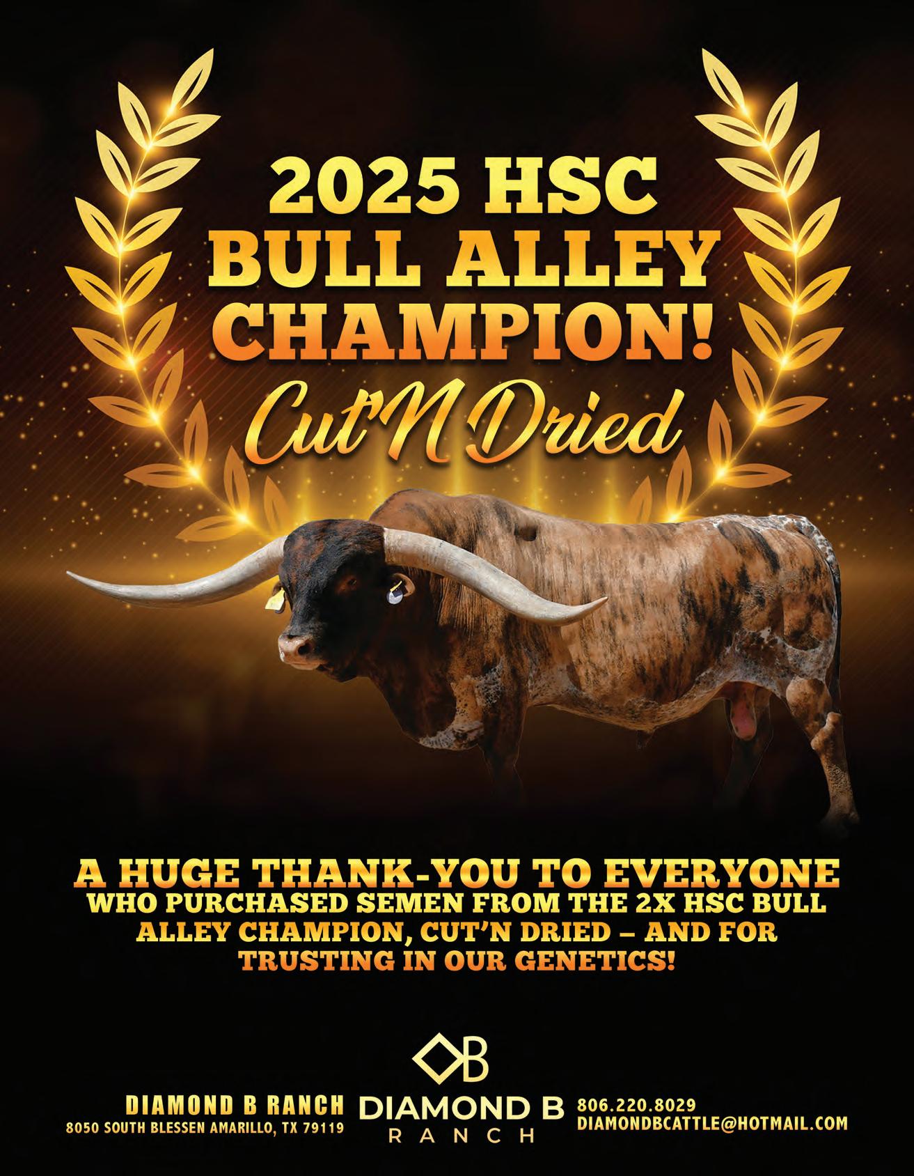 March 13-15, 2026 • NTLBA Spring Show, Hopkins County Civic Center, Sulphur Springs, TX. Entry Deadline 2/25/26 (email & postmark). John Oliver (972) 268-0083, joliver210@yahoo.com or Brenda Oliver (972) 268-0031, boliver84@yahoo.com. Qualifying Haltered, Non-Haltered, Trophy Steers, Youh, Miniatures and 2 Points Only