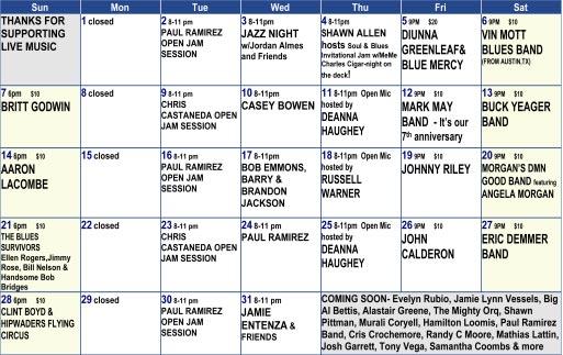 2 Music News • May 2023 Special Events at The 19th Hole Tuesdays Karaoke Wednesdays Bingo Fridays 10 oz. Steak Lunch Special Only $13.99 Every Thursday Night Live Jam Session! All Musicians Welcome! GRILL & SPORTS BAR 202 Sawdust Rd. (The Woodlands) • 281-363-2574 • http://www.19th.cc The 19th Hole Grill & Bar is celebrating our 32nd Year Anniversary of being a live music venue DART TOURNAMENT EVERY MONDAY NIGHT!! Take I-45 to the Rayford/Sawdust exit in Spring • Go west on Rayford/Sawdust • Make a right turn at the first red light We’re at the end of the strip center on your left! @ 8:00 PM https://www.facebook.com/theHOLE19TH/ MAY