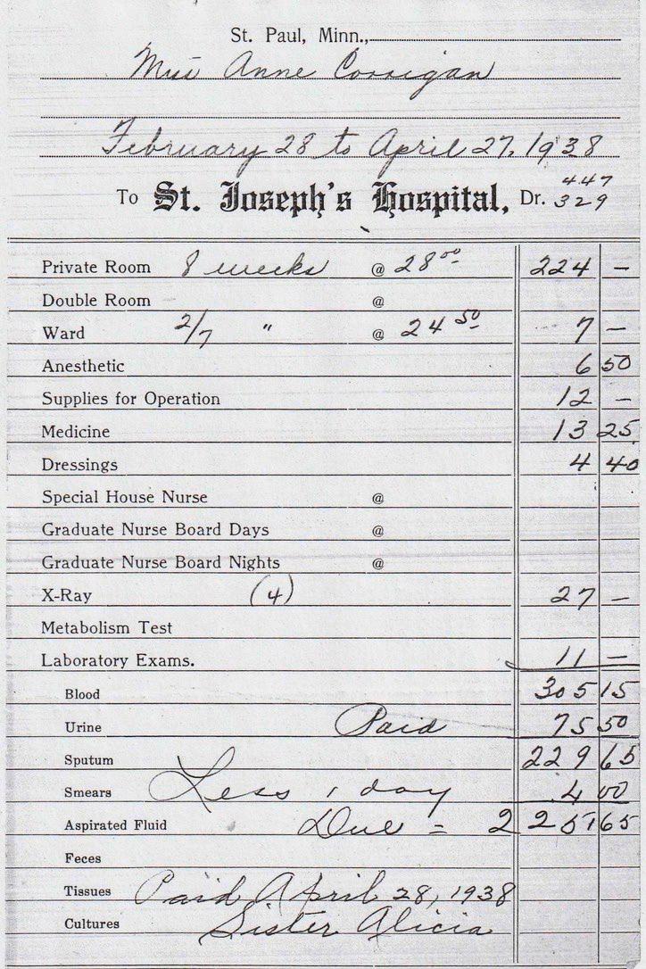 When nursing became part of the room charge. Look at this hospital bill from St Paul MN in 1938. The patient was in the hospital for 8 weeks. Note that the categories “special house nurse; graduate nurse board days; and graduate nurse board nights are blank. This bill suggests the hospital had at one time billed for nursing services, then stopped. It is time to remove nursing from the room charge!