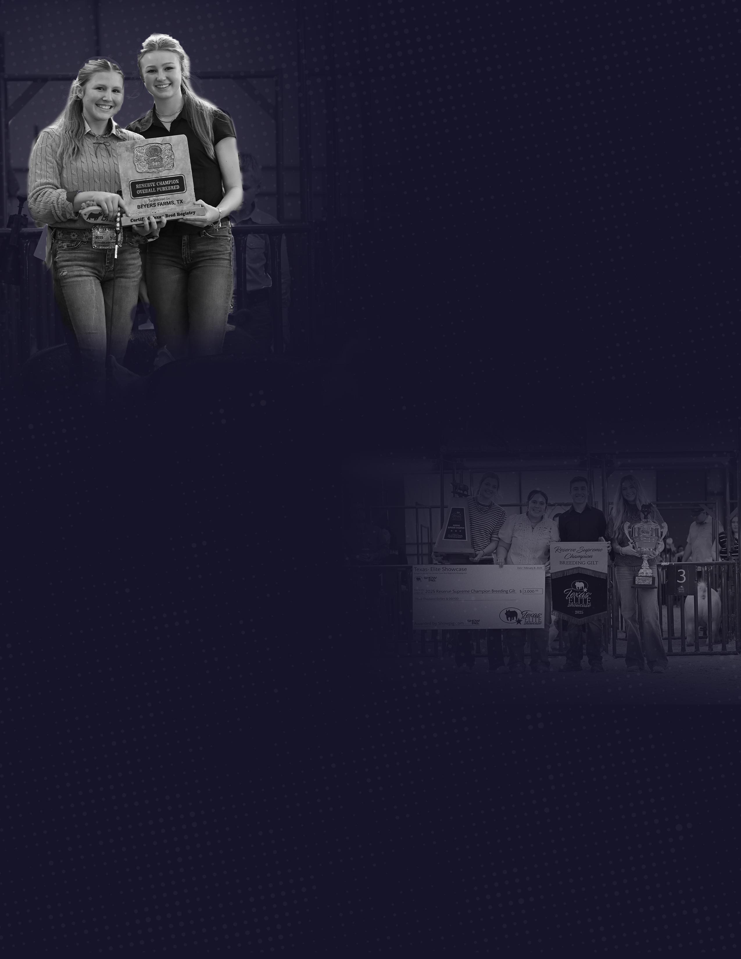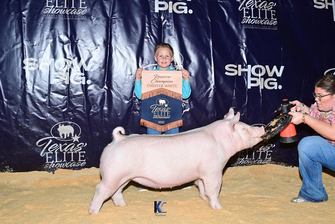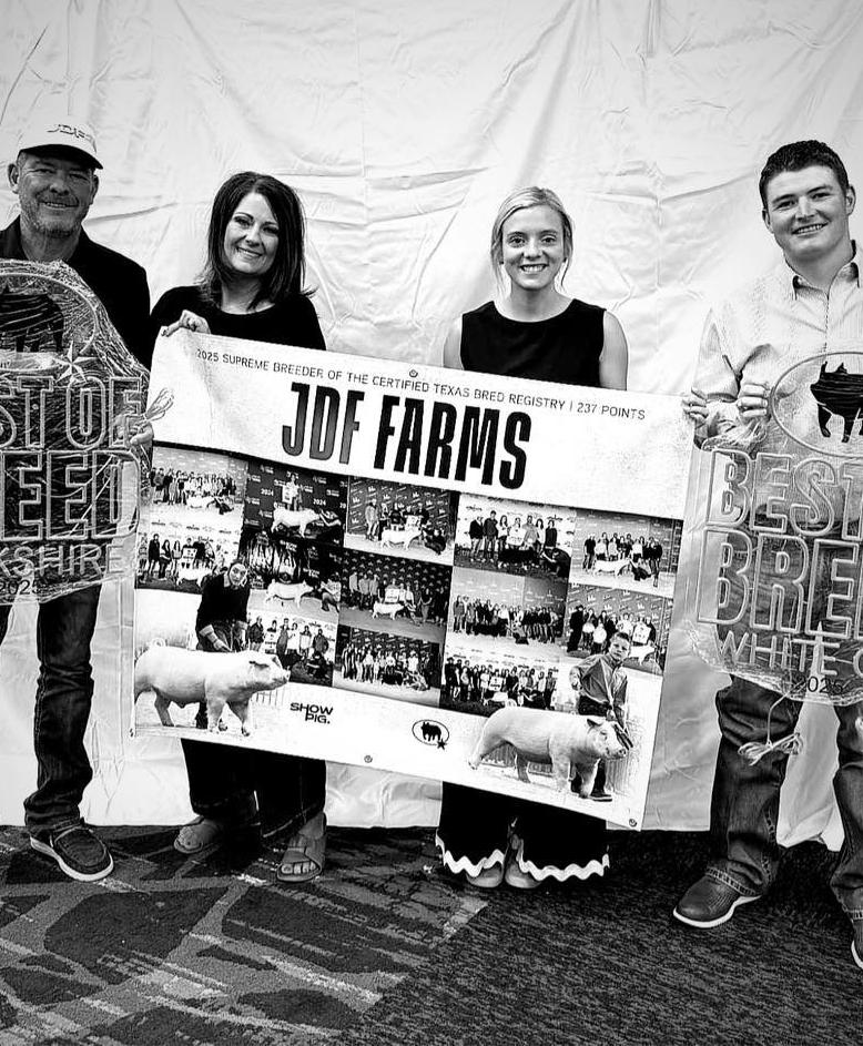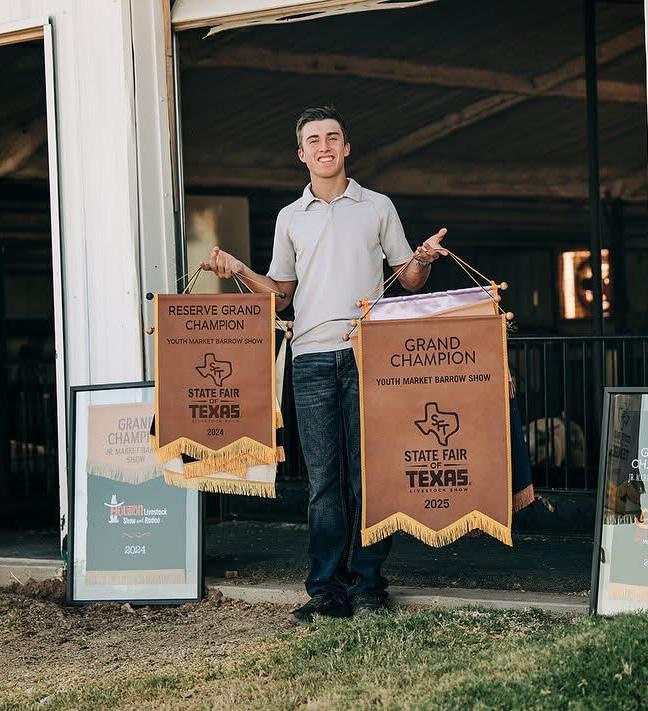 their own gilts and setting the foundation for what has become a thriving show pig operation. His son, Caid, carried that same drive into his own showing career, competing from eighth grade through high school before attending Hardin Simmons University in Abilene. After college, Caid returned to the family farm, combining his love for competition with his passion for raising quality livestock.