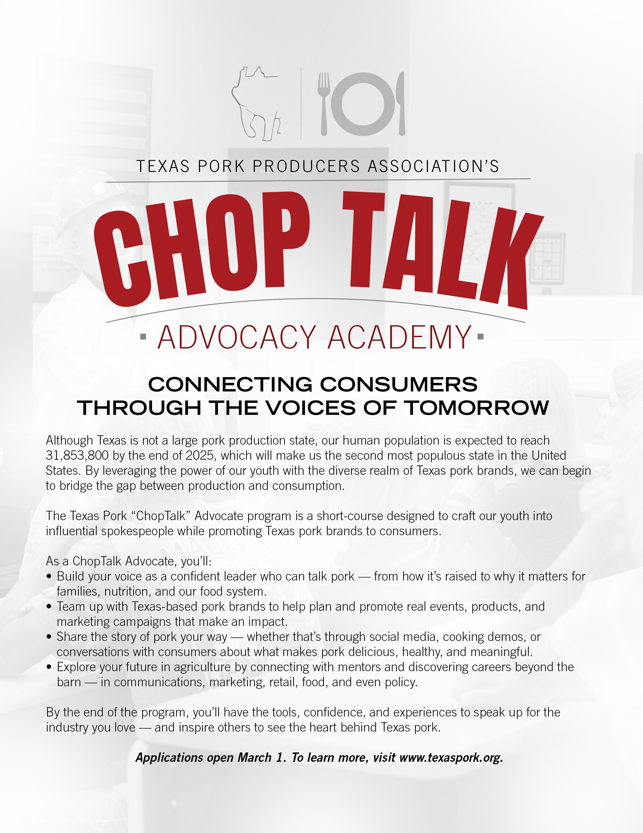 “Education. Advocacy. Promotion. The Texas Pork Producers Association is dedicated to the advancement of a sustainable and profitable pork industry.”