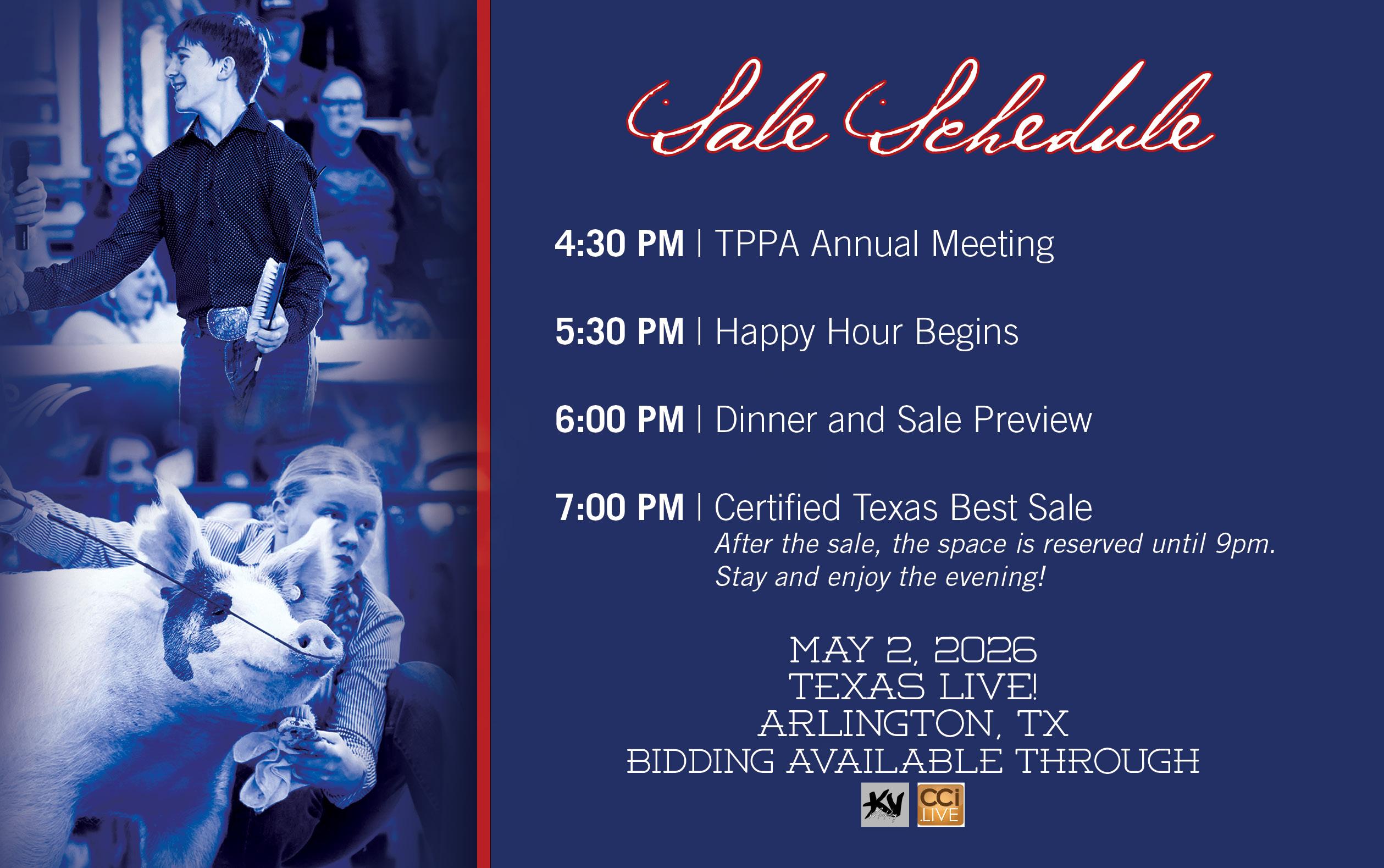 • At selection, buyer may double the hammer price to keep a boar intact. Pick of the litter out of the Champion Berkshire Gilt at Texas Elite ’26
