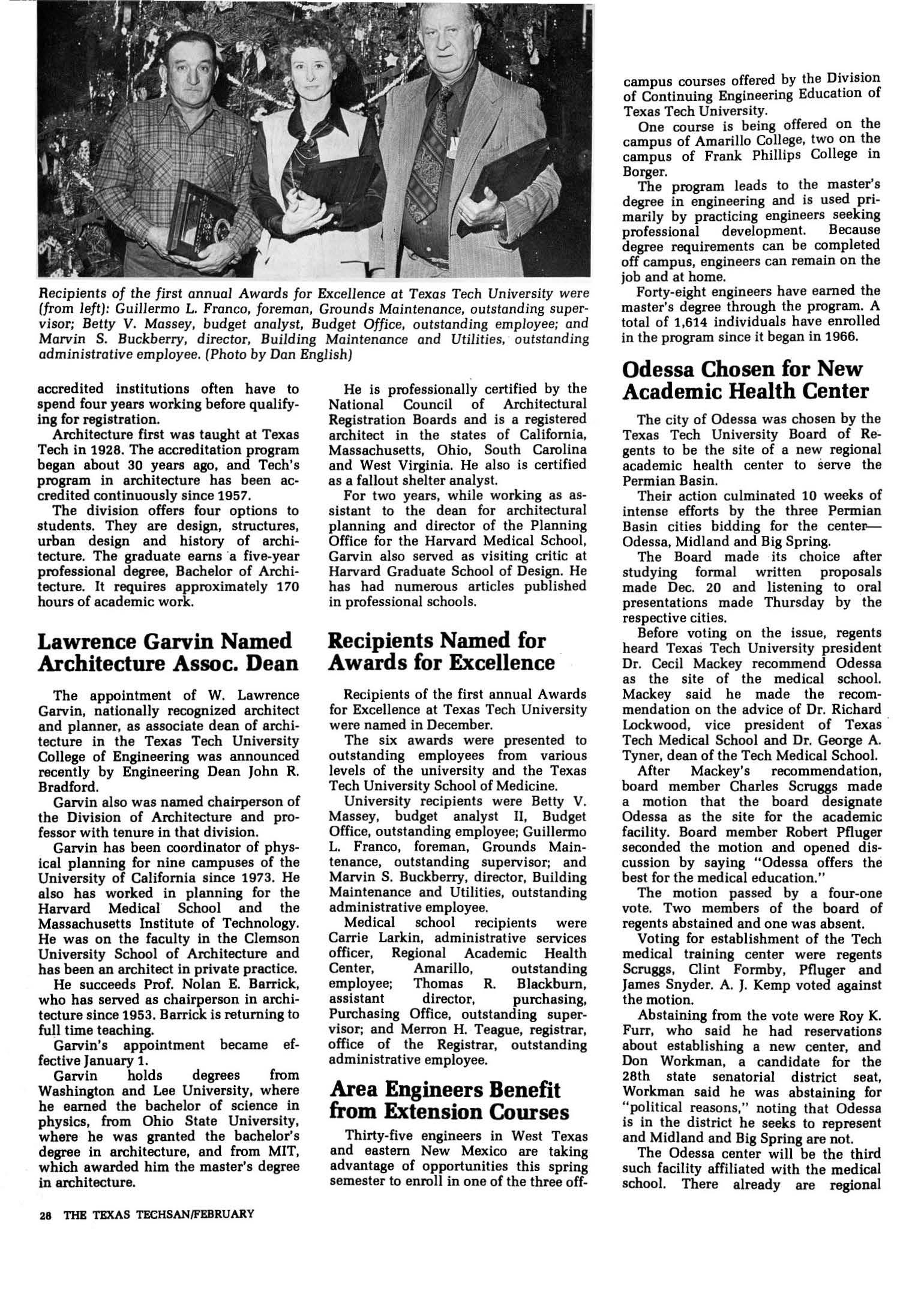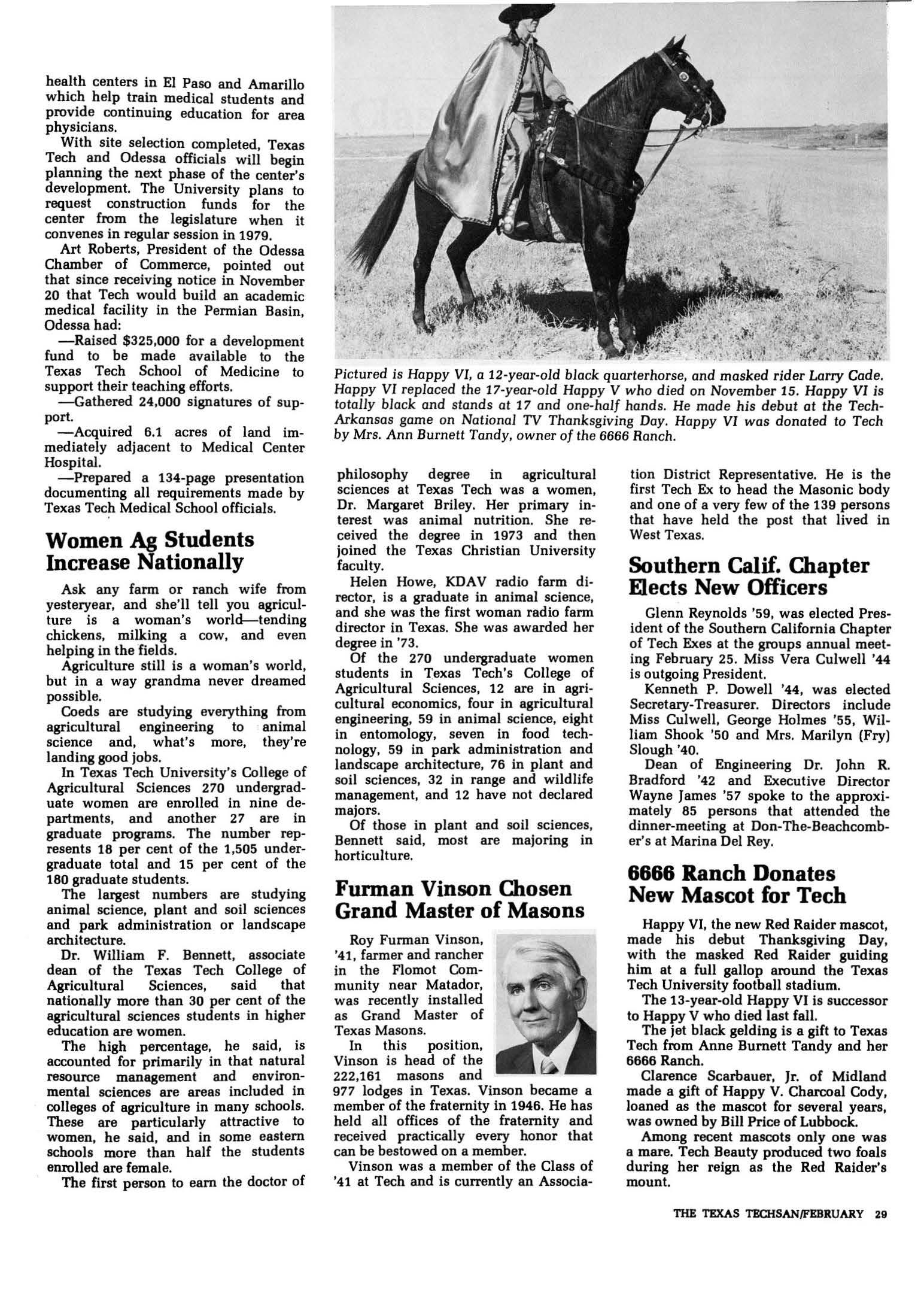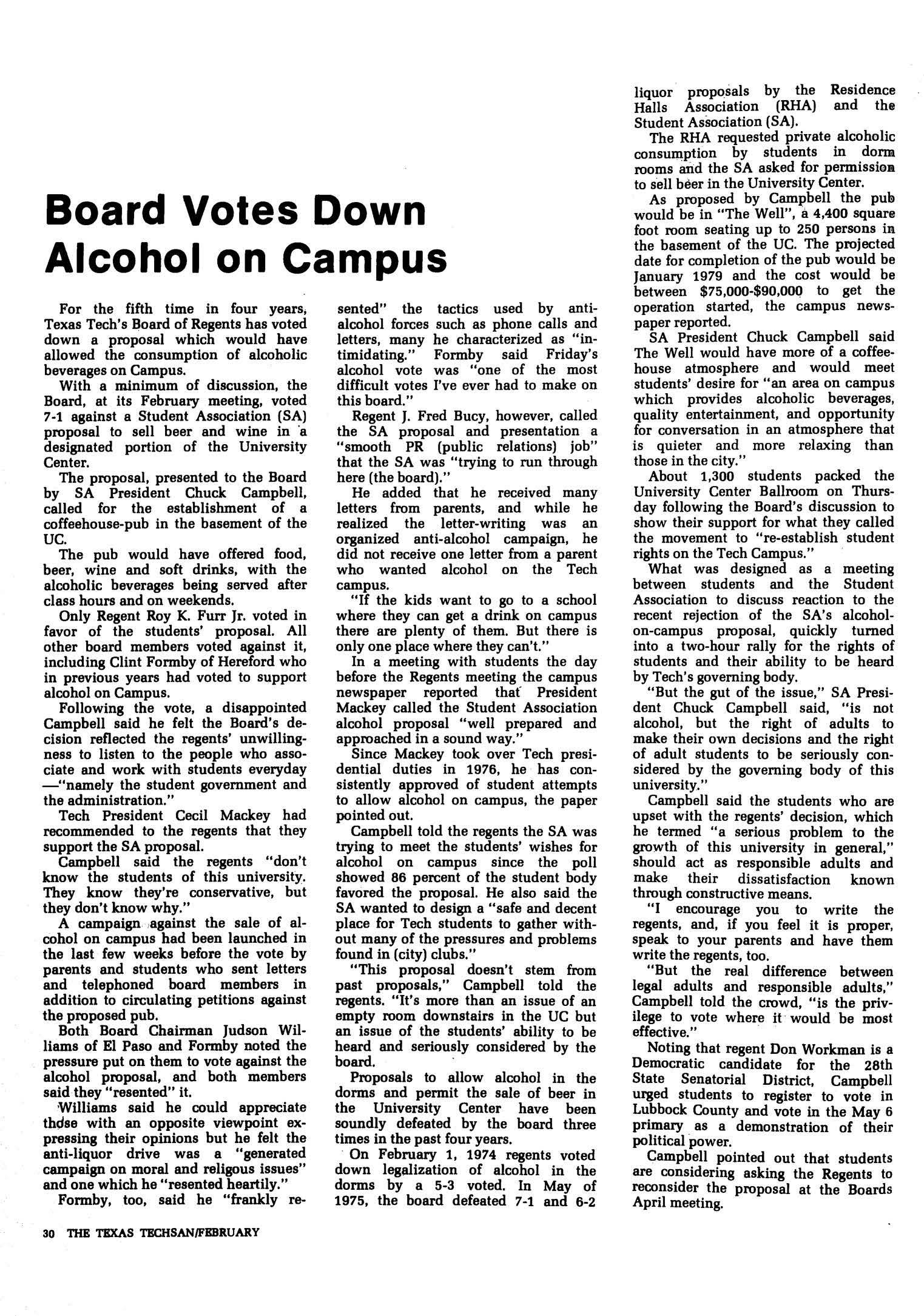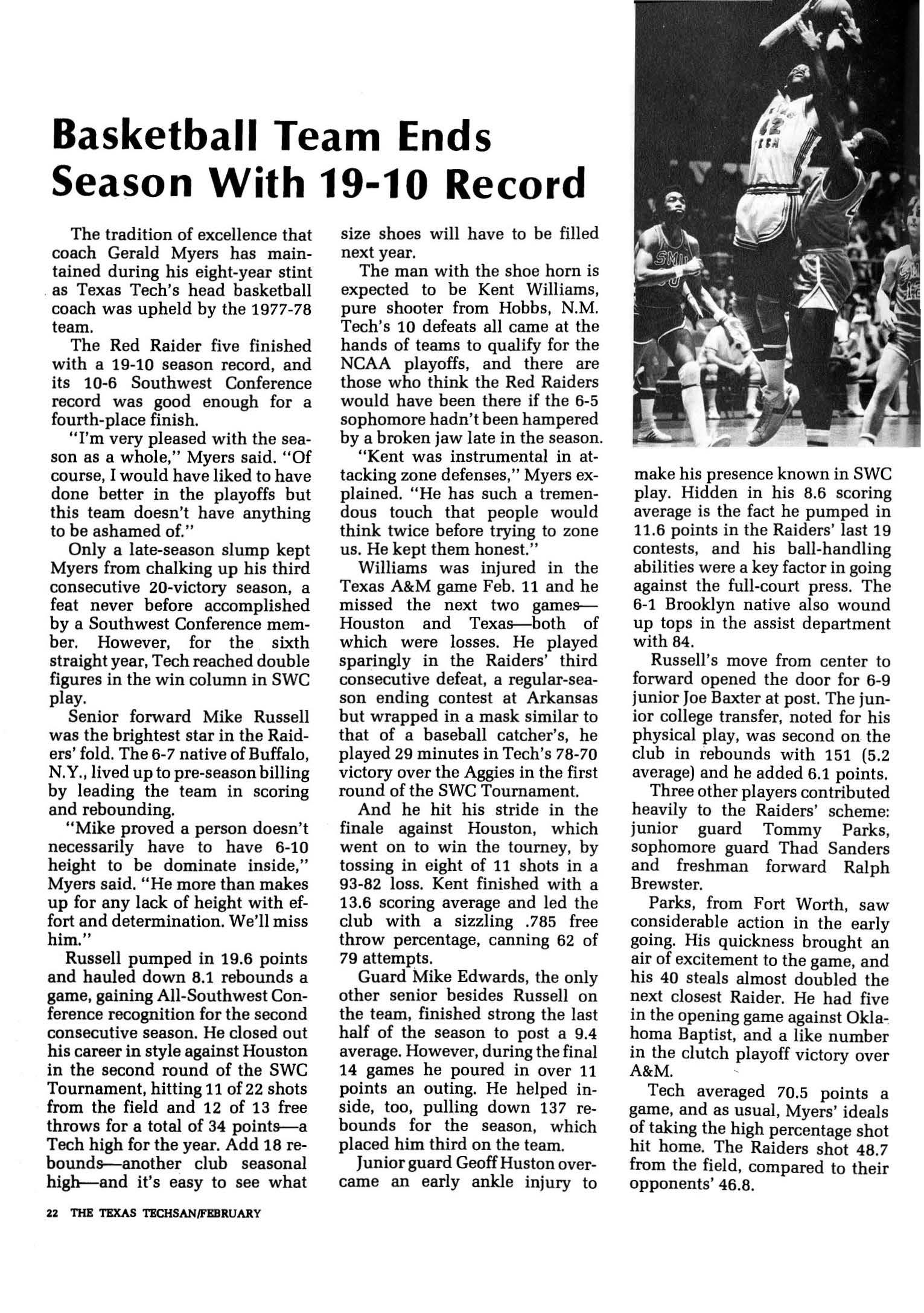 -the 3Eecl:l.san Contents Volume 31 Numbe r1 February 1978 Te xas Te ch Ex-Stude nts A ssoc iation Many Challenges Face Engineering in the Future 2 Parity •.. Parity ... Parity Wayne James Resigns An Interview with Dean Jones Students for Free Enterprise Active on Tech Campus Tech Signs Good Crop of Football Recruits Basketball Team Ends Season with 19-10 Record Tech Today Board Votes Down Alcohol on Campus Class Notes Editor' s Notebook The Final -3o-8 10 13 18 20 22 26 30 31 48 53