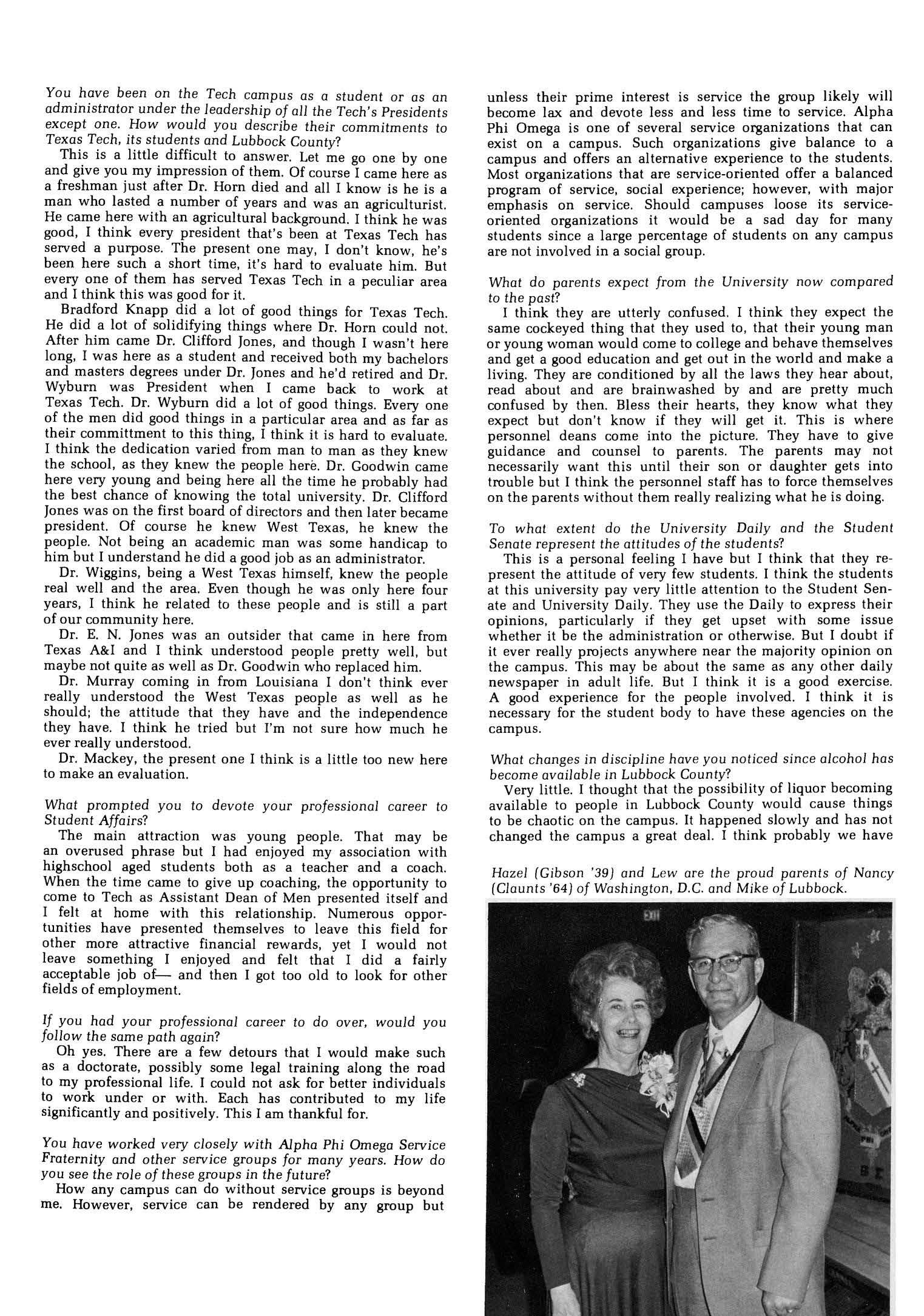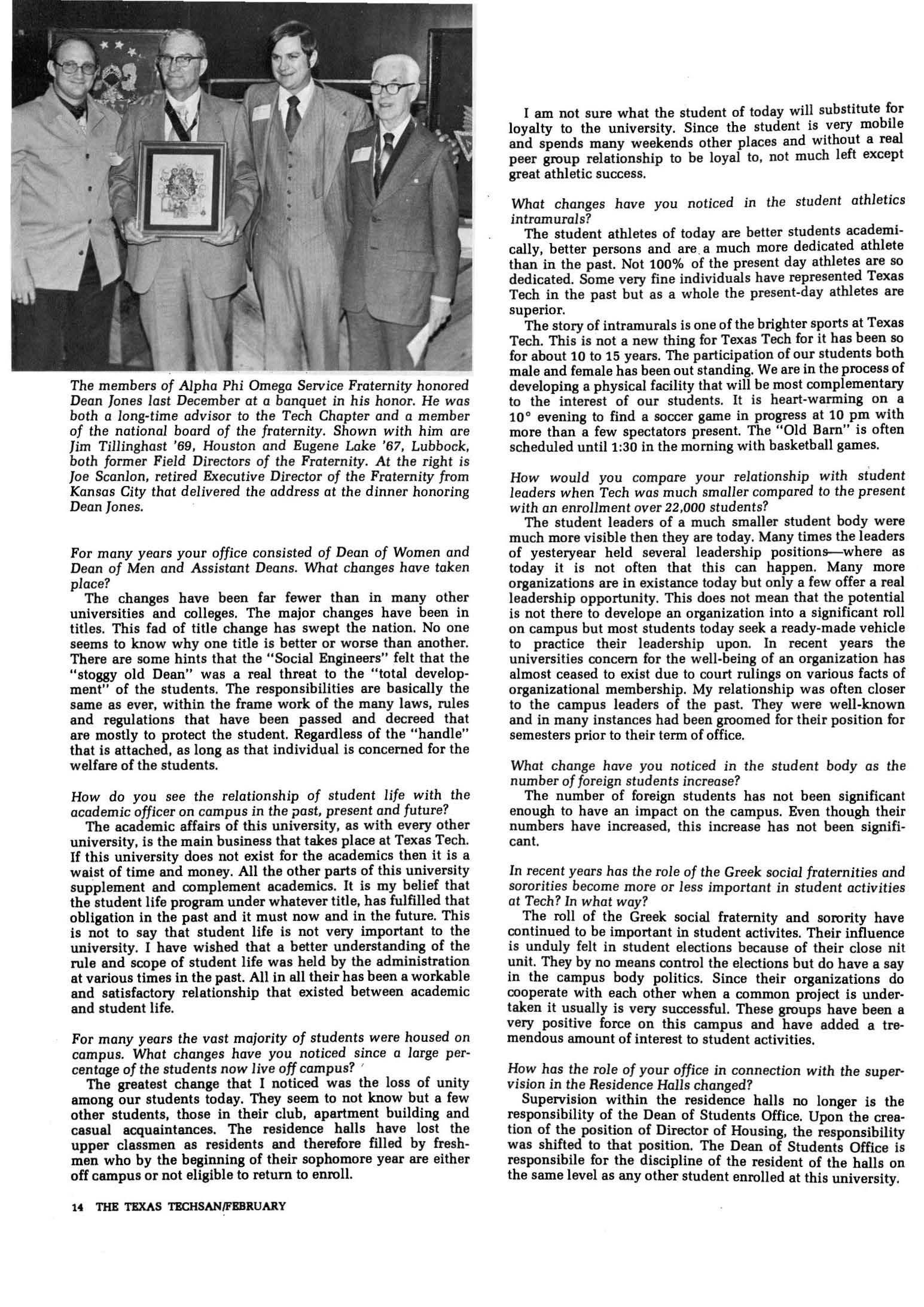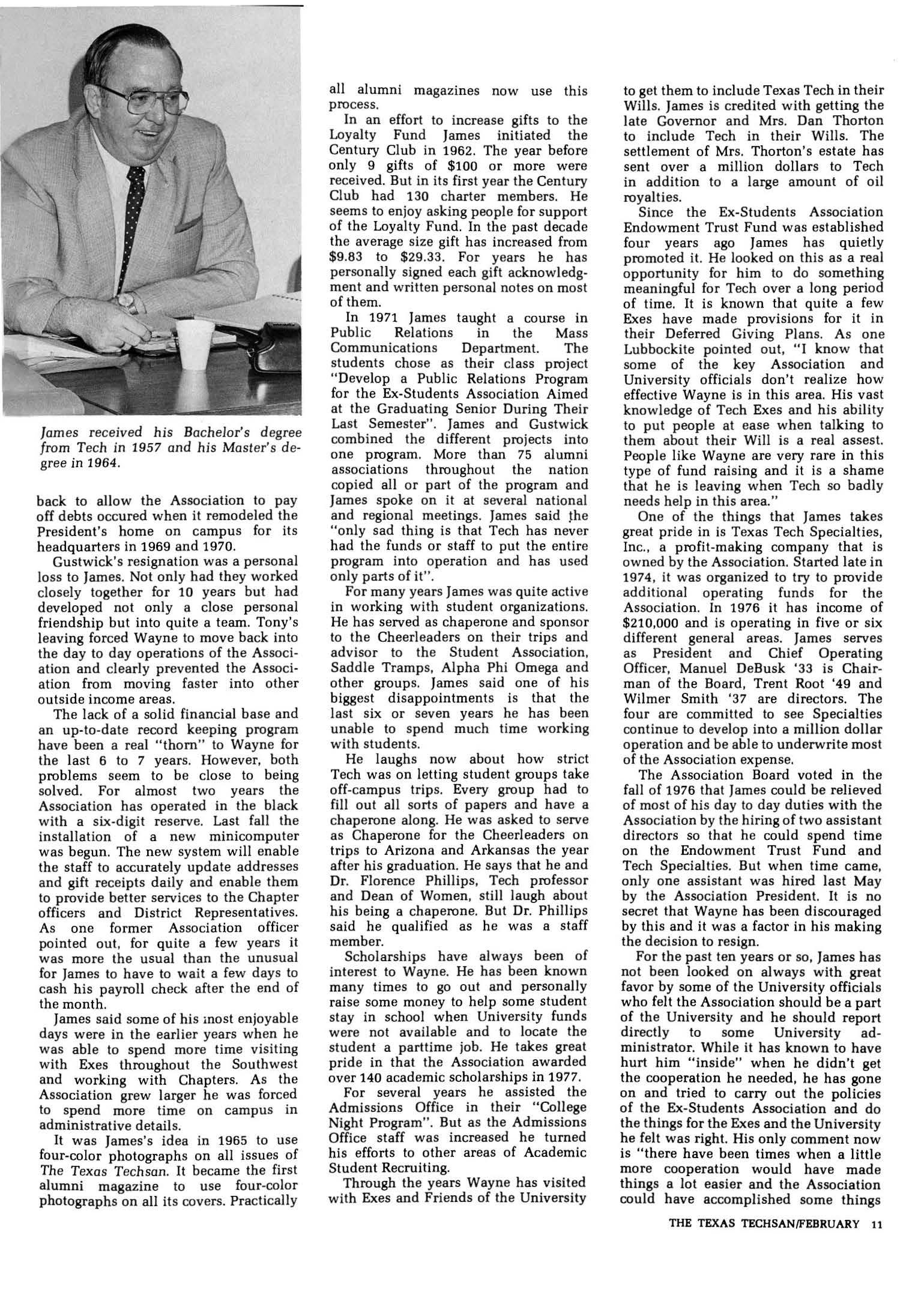 For the last 18 of my 20 challenging and satisfying years, it has been my privilege to head up the Association staff and work with volunteers in a program which aimed at the continuous renewal of the organization The goal has always been focused on what the Association will be and what it will do for Texas Tech and its Ex-Students and not what it has been.