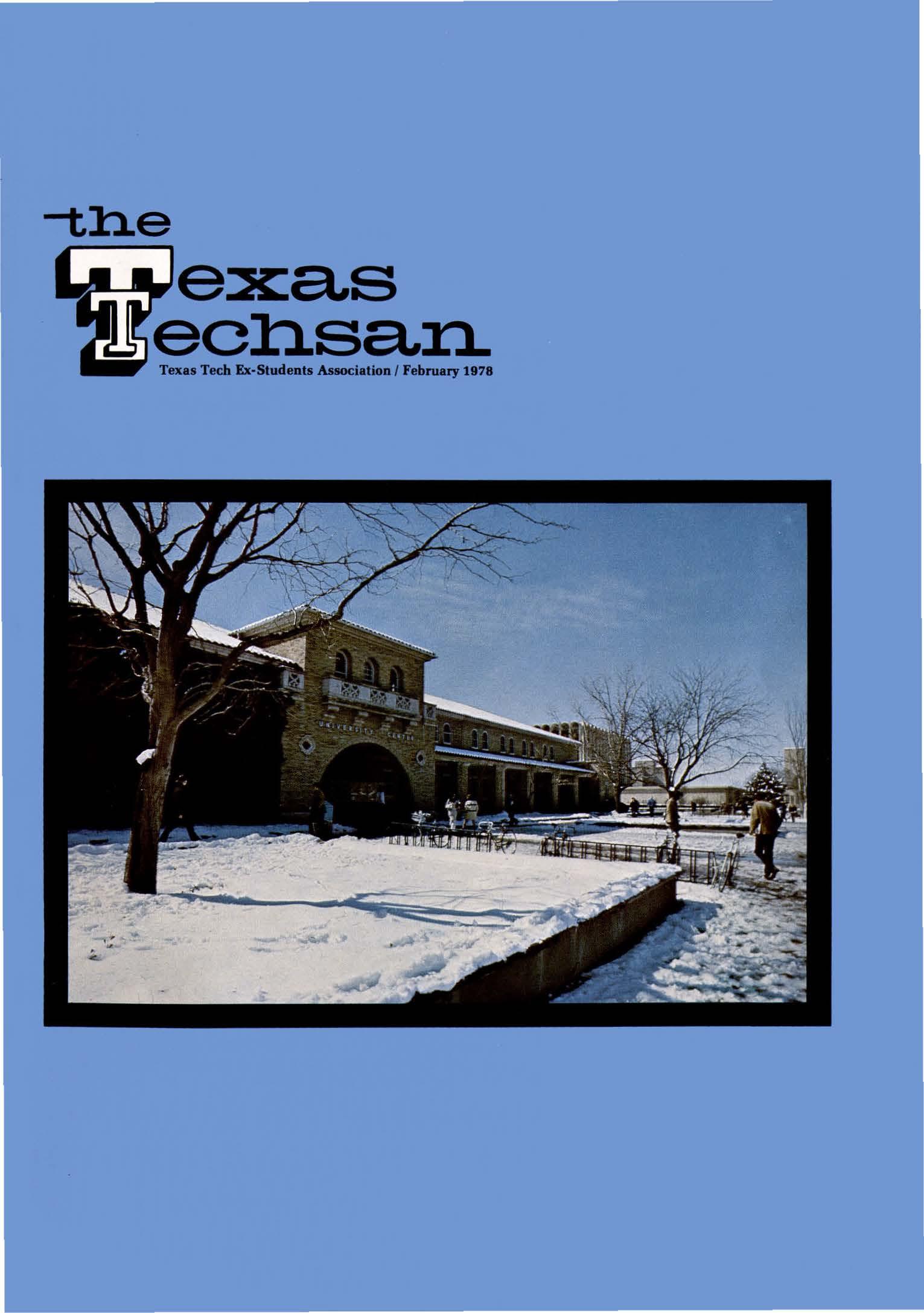 Mor e tha n 16 inch es of s no w fe ll on th e Texas T ech campus thi s winter an d all classes were dis m issed on F ebr ua ry 17 because of th e h eavy snow. Th e Univ ersity Center (S tu dent Un i on Build ing) i s shown on th is mont h s cover Debbie Elki n s was th e pho tographer.