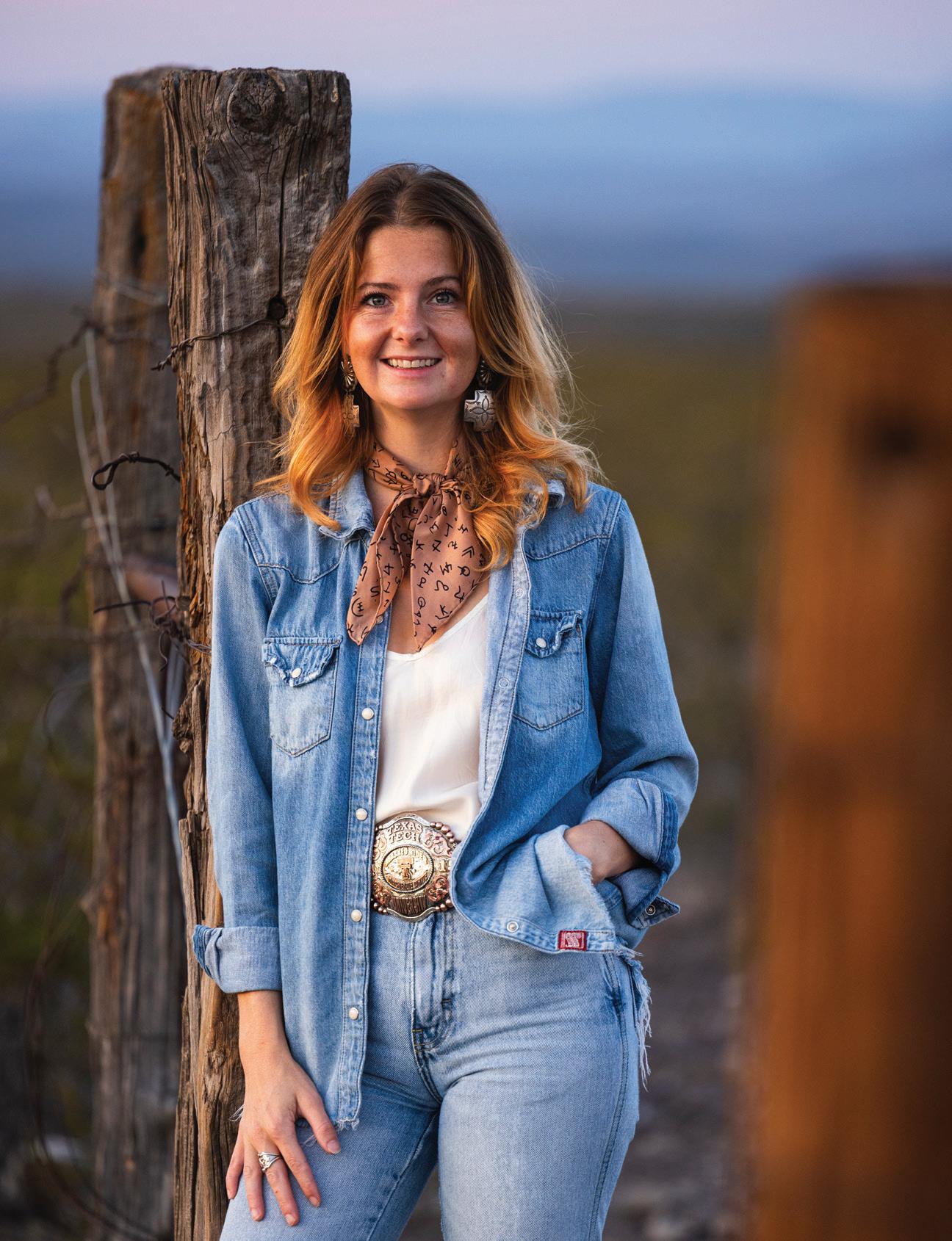 photo on these two pages by Wyman Meinzer | DRIVING SNOW. on the cover by Jerod Foster | FORMER MASKED RIDER MACKENZIE WHITE ’16, ’18, ON THE RANCH WHERE SHE RESIDES IN FAR WEST TEXAS.
