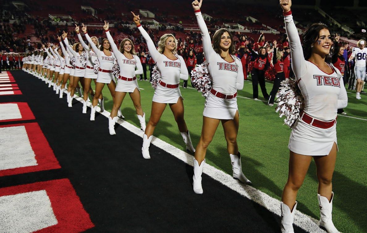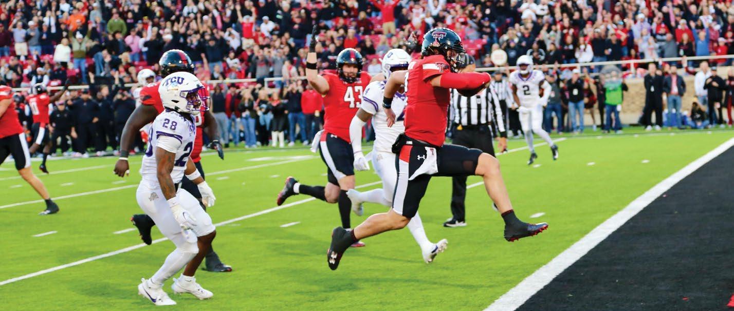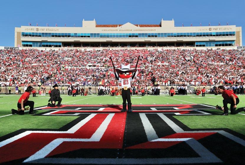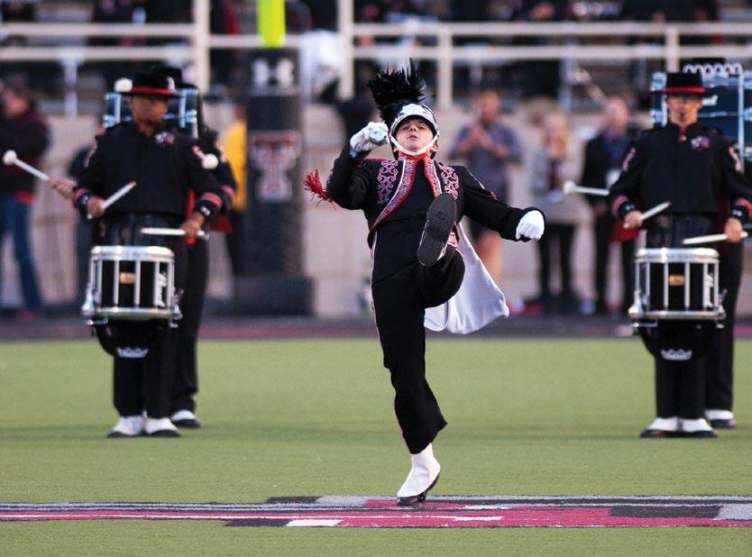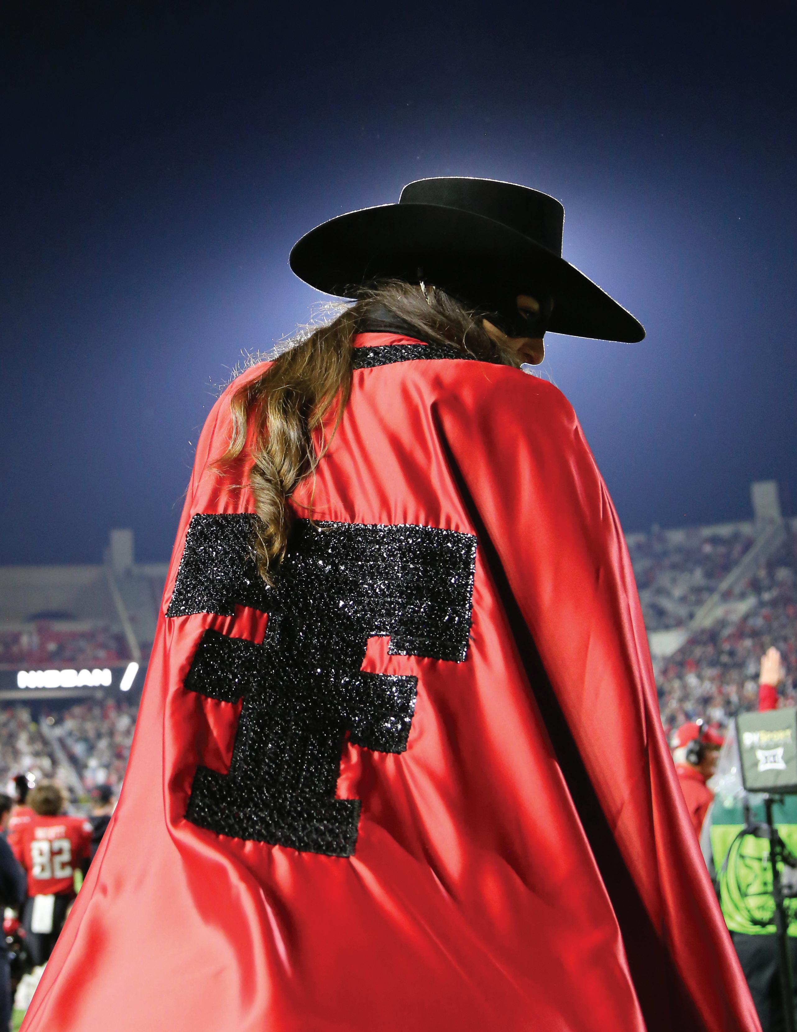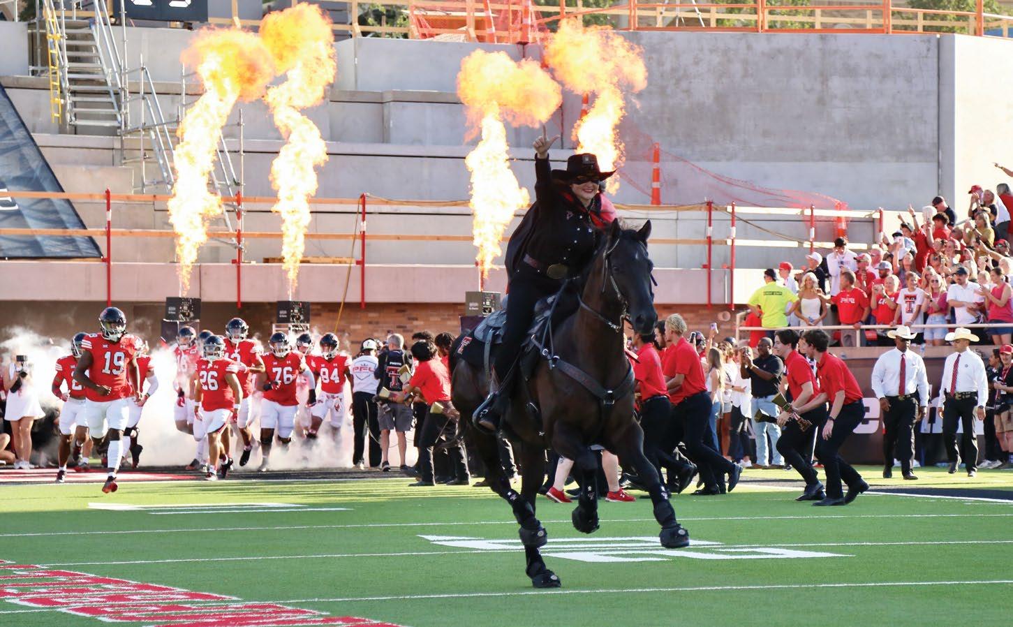 photo on these two pages by Wyman Meinzer | ON THE PROWL. on the cover by Robert Rhode | ONE OF THE MOST ICONIC VIEWS ON GAME DAY IN RAIDERLAND, THE MASKED RIDER. THE MASKED RIDER ON THE COVER IS LAUREN BLOSS '24, 62ND MASKED RIDER, 2023-2024.