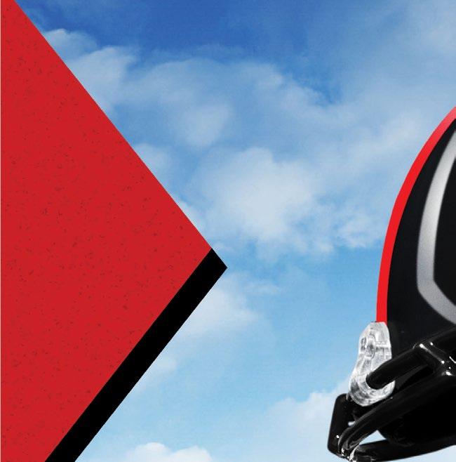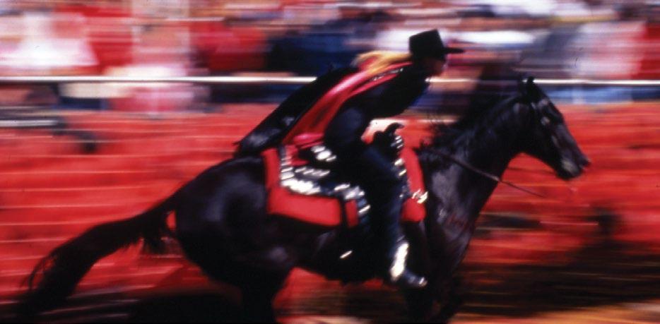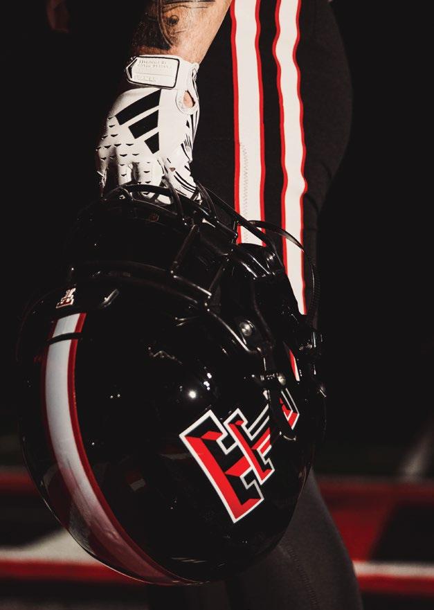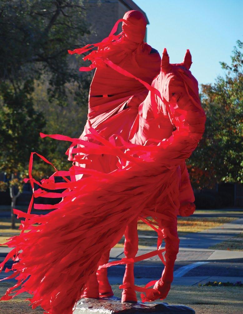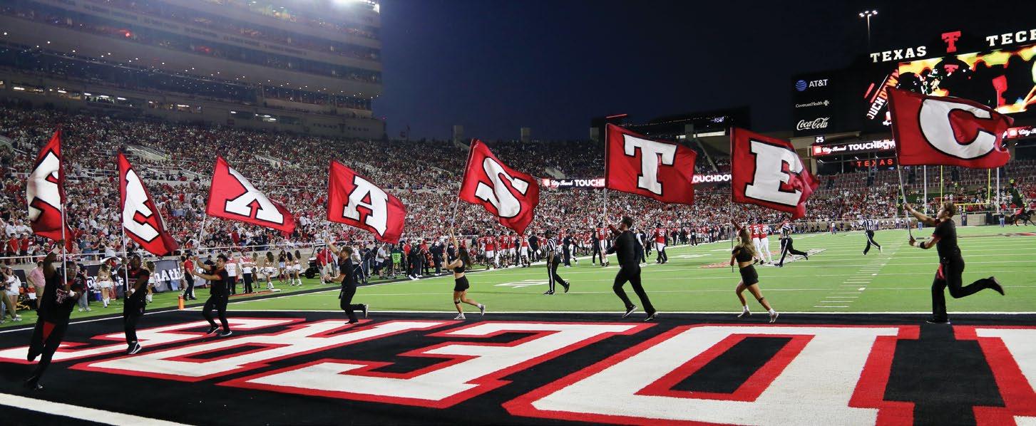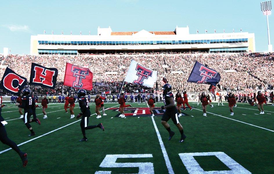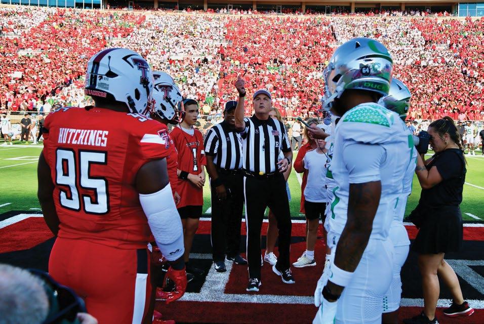 photo on these two pages by Wyman Meinzer | ON THE PROWL. on the cover by Robert Rhode | ONE OF THE MOST ICONIC VIEWS ON GAME DAY IN RAIDERLAND, THE MASKED RIDER. THE MASKED RIDER ON THE COVER IS LAUREN BLOSS '24, 62ND MASKED RIDER, 2023-2024.