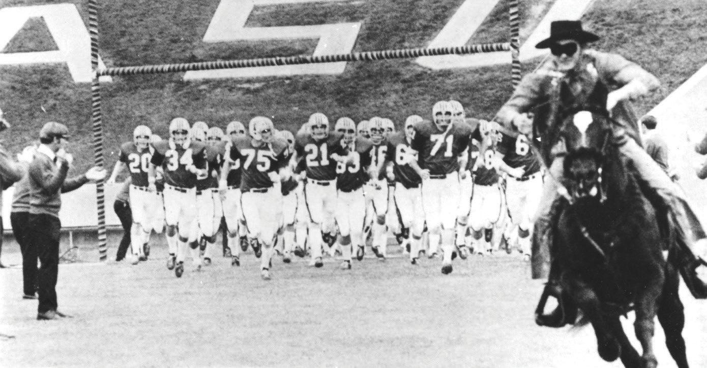 On New Year’s Day in 1954, the underdog Texas Tech Red Raiders trounced Auburn, persistent pride of the SEC, in the Gator Bowl. The score was 35–13, and it would be almost twenty years before Tech would win another bowl game. But the important 1954 game also established a much deeper tradition of excellence, one that has never suffered the ups and downs of collegiate sports. On that January 1, the Red Raiders were led onto the field by Joe Kirk Fulton. Donning a mask and wearing custom chaps, Fulton charged onto the field on horseback, leading the team and thereby establishing the Masked Rider, a mascot and public figure whose role continues to this day.