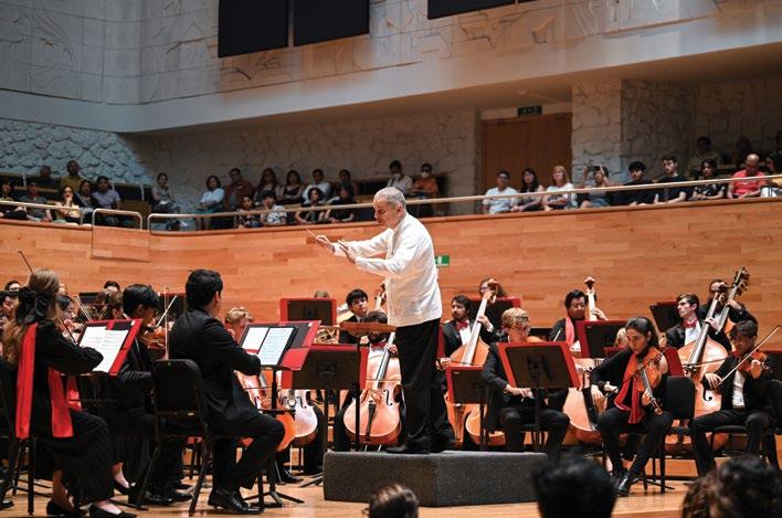 THE TEXAS TECH UNIVERSITY SYMPHONY ORCHESTRA COMPLETED A SIX-DAY TOUR THROUGH CENTRAL MEXICO IN MAY, PERFORMING TWO CONCERTS. The 60 student musicians began their tour in Mexico City, where they collaborated with the National Center for the Arts, the country’s leading institute for arts education. Here, the orchestra played a concert to a full house of more than 1,000 people. Additionally, eight faculty members from the Texas Tech School of Music offered masterclasses to students in Mexico in which hundreds of Mexican students and faculty participated. The group then traveled east to the University of Xalapa, where their concert was also widely attended. The orchestra last traveled to Mexico in the 1970s.
