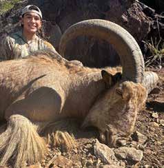 He nudged a nearby ewe, then turned broadside at 15 yards. Tom’s PSE bow thumped a heavy carbon arrow tipped with a G5 Striker V2 broadhead into the ram’s side. Tom was elated with his firstever aoudad ram, a 30 incher.