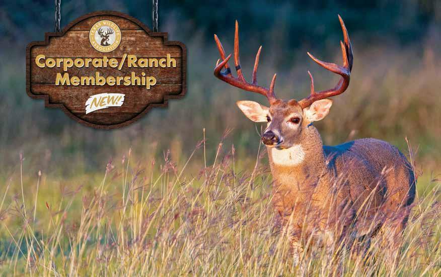 From the Piney Woods to the Panhandle, from the deserts of the Trans-Pecos to the barrier islands of the Coastal Bend, Texas is bountiful in beauty and rich in wildlife–and every last part of it is worth protecting. We take great pride in our great state, and that means we must invest in it and care for it. Since 1985, TWA has served as a strong voice for Texas private land stewards. We invite you to join us as a Corporate/Ranch Member to amplify that voice. Join TWA at the new Corporate/Ranch Membership Level • 12 issues of Texas Wildlife magazine a year • Stay up to date on the latest in hunting and conservation • Network with wildlife enthusiasts, ranch and business owners in your community • Personalized Gate Sign plus Agri-tourism Gate Sign • Showcased on the TWA website as a Corporate/Ranch Member - Complete with a link to your website - Showcased quarterly in the Texas Wildlife magazine Visit texas-wildlife.org/membership or call 210-826-2904 More than 95 percent of Texas land is privately owned. Texas wildlife depends on Texas landowners!