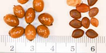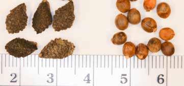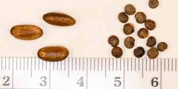 Bumelia and honey mesquite produce large quantities of seeds. Inner husk of mesquite shown with the kernels.