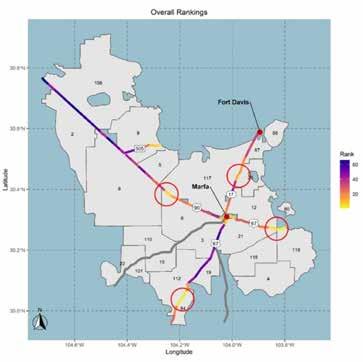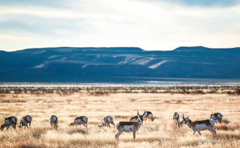 historic drought loomed just around the corner. Nearly 80 percent of radio-tracked animals that were released perished. Undeterred, TPWD resumed translocation efforts in 2013 once the drought eased, and since that date have released hundreds of Panhandle pronghorn in the TransPecos. Though these efforts have helped gradually increase numbers in West Texas, the population remains tenuous. Of the approximately 20,500 pronghorn estimated to occur as of 2020, roughly 4,500 reside in the Trans-Pecos.