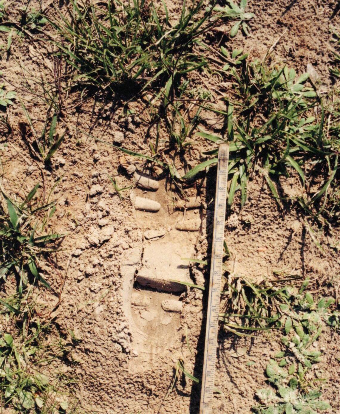 Charles Beaty’s day-old boot print on the Kenedy Ranch (top). Warden’s knew they were getting closer to Beaty as his boot prints became more defined (bottom).