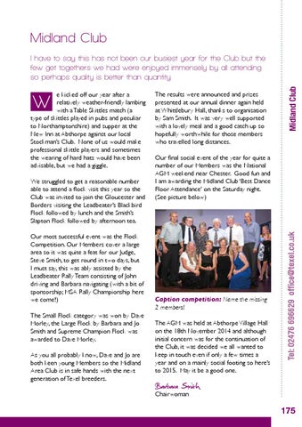 We struggled to get a reasonable number able to attend a flock visit this year so the Club was invited to join the Gloucester and Borders visiting the Leadbeater’s Blackbird Flock followed by lunch and the Smith’s Slapton Flock followed by afternoon tea. Our most successful event was the Flock Competition. Our Members cover a large area so it was quite a feat for our Judge, Steve Smith, to get round in two days, but I must say, this was ably assisted by the Leadbeater Rally Team consisting of John driving and Barbara navigating (with a bit of sponsorship; MSA Rally Championship here we come!) The Small Flock category was won by Dave Morley, the Large Flock by Barbara and Jo Smith and Supreme Champion Flock was awarded to Dave Morley. As you all probably know, Dave and Jo are both keen young Members so the Midland Area Club is in safe hands with the next generation of Texel breeders.