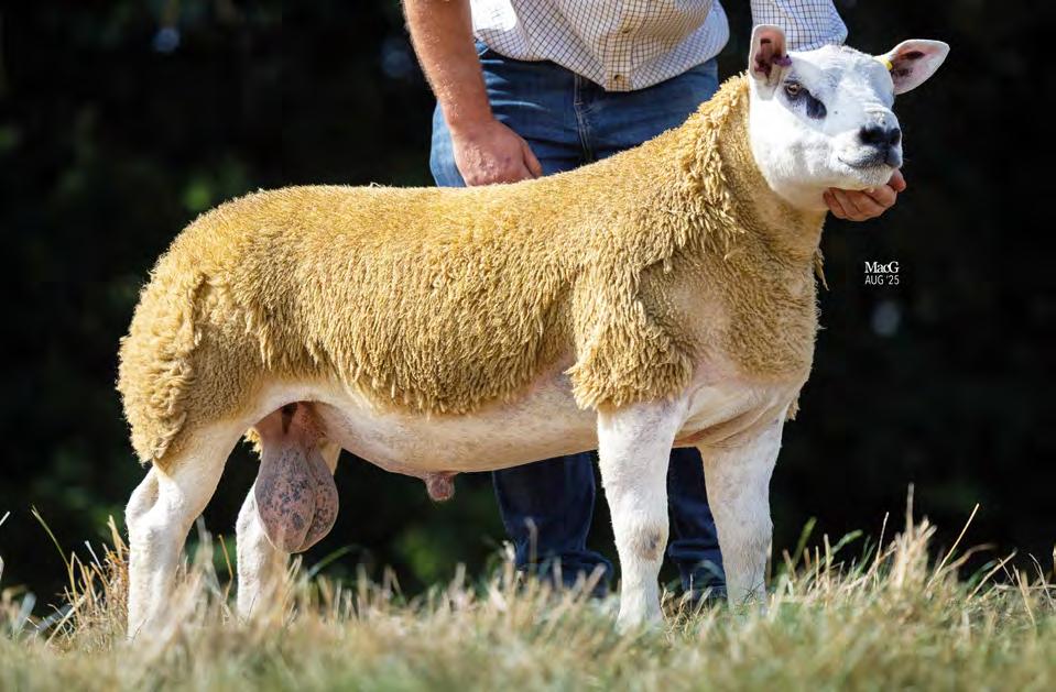 Sired by Cambwell Goliath and out of a dam by Ettrick Douvan, he sold with a top 1% texelplus index and was taken by N S Ponting, Faringdon.