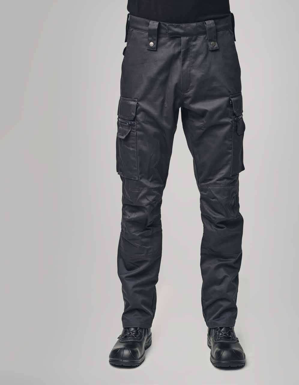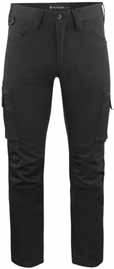 Een moderne, sterke servicebroek met soepele 4-wegstretch over achterzijde, voorzijde, zitvlak en kruis.