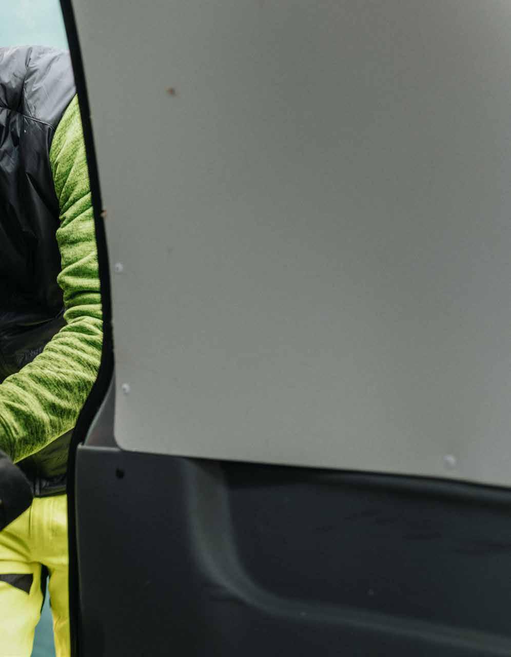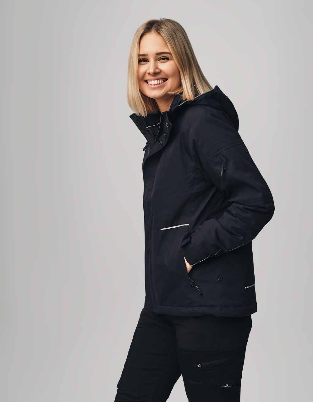 Met een klimaat dat aan verandering onderhevig is en omdat je niet altijd weet hoe het weer zich door dag heen ontwikkelt, is een comfortabele en betrouwbare buitenlaag belangrijk. Wij hebben diverse varianten met verschillende voeringen die geschikt zijn voor verschillende seizoenen. Softshell is een uiterst comfortabel materiaal in het voor- en najaar, maar in de winter is een jas met voering wellicht een betere keuze. Softshell Jacket 3L (pag. 62) is wind- en waterafstotend voor iets zwaardere weersomstandigheden en bij lagere temperaturen adviseren wij ons Service Winter Jacket (pag. 76) van waterdicht, ademend materiaal met getapete naden en reflectie.