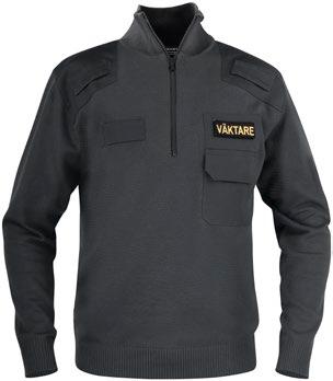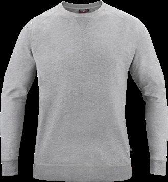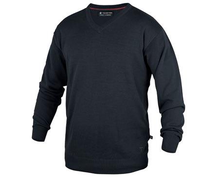 Comfortable crew neck pullover with ribbing at neck, cuffs and bottom edge. Chest pocket with flap, pen compartment on left sleeve. Reinforced shoulders and elbows.