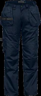 These trousers with 100% stretch are ideal for people whose jobs require extra ease of movement. One back pocket, two zipped side pockets, pre-shaped knees. Elasticated adjustable waist. 88% nylon, 12% spandex.