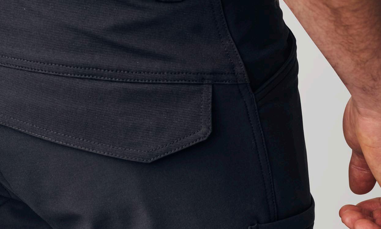 Fashionable technical trousers with great fit and many practical pockets, including a zipped thigh pocket, mobile phone pocket and pen pocket.