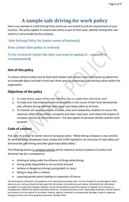 DEVELOP A DRIVING FOR WORK POLICY