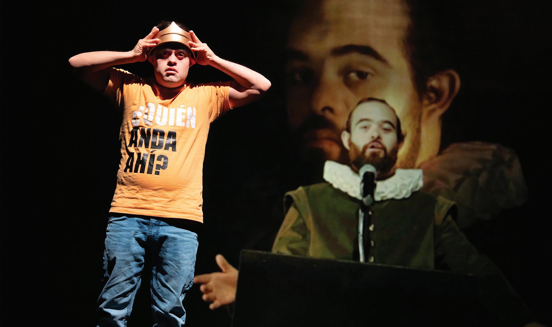 The verb to be has two translations in Spanish: “ser” and “estar.” The standard translation of Hamlet’s “To be or not be” is “Ser o no ser,” which speaks to a fixed quality of being: something that describes and defines an individual’s identity. Hamlet poses the question to himself in a way that is usually interpreted as a way of trying to understand the very purpose of life and death. In the context of La Plaza’s Hamlet, the being in question is considered as ‘un-fixed’ and shifting, with the focus on the value of difference. New critical layers and qualifiers are added to the meaning of existence: to be or not to be ‘normal,’ to be or not to be ‘different,’ to be or not to be ‘neurotypical,’ to be or not to be ‘disabled,’ to be or not to be an actor, to be or not to be ‘functional,’ to be or not to be a ‘productive and valuable member of society.’ These questions underline the social stigmas faced by people with Down syndrome, and by extension other neurodivergent communities or anyone that escapes a certain pattern or expectation of ‘normality’ in mind or body.