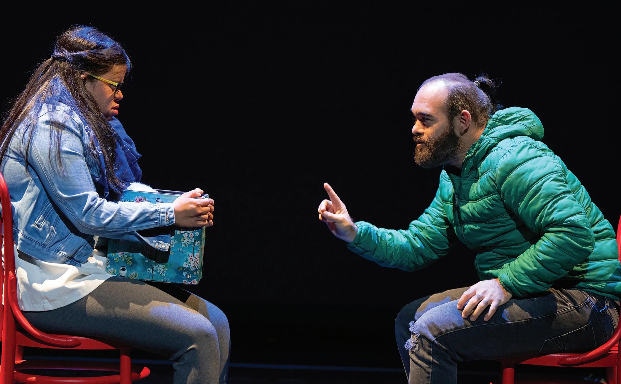 They say things like, “We may forget our lines.” They ask for patience, as sometimes they take a while to say a line. They tell us that Cristina has tics, and that nobody should worry, and if you don’t like it, you can leave. I love that, it’s so much fun. It lays the groundwork for what’s going to happen and opens a door to their world, to this world they’re going to present to us. And I think that opening of a door, is wonderful. I’ve never seen anything like it in a play. It makes it more personal. It brings the stage as close as possible to something so intimate.